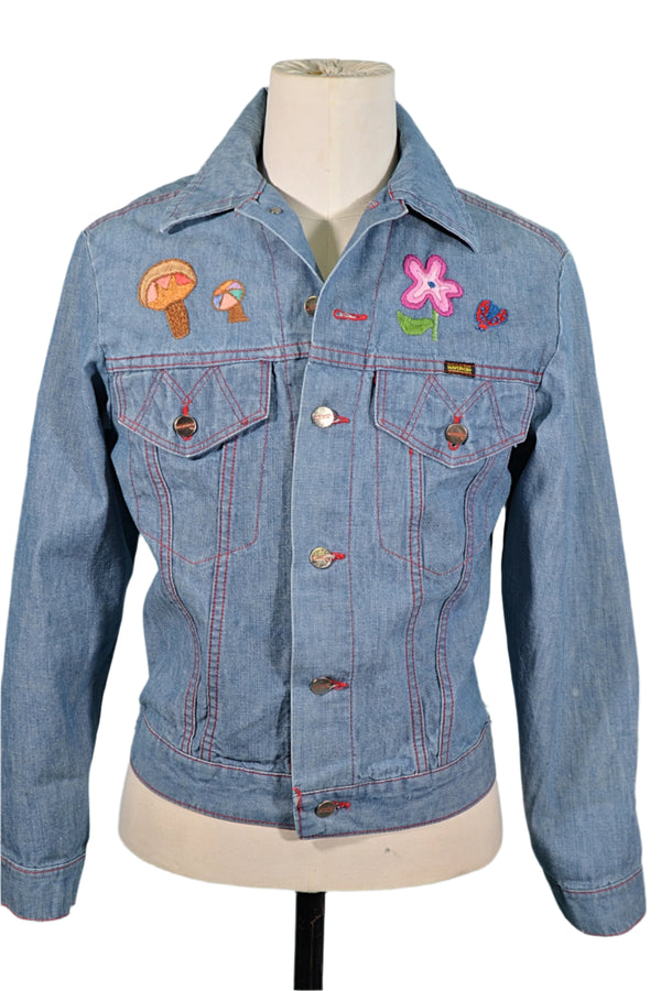 Vintage 60s/70s Embroidered Denim Jacket, OOAK, Maverick 38