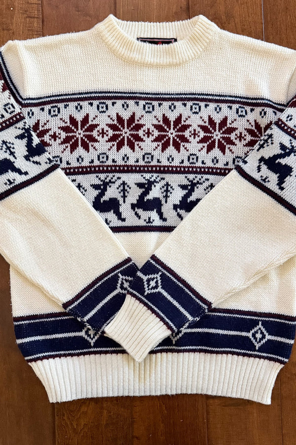 Vintage 70s Deer/Snowflake Nordic Scandinavian Sweater, Acrylic Pullover M