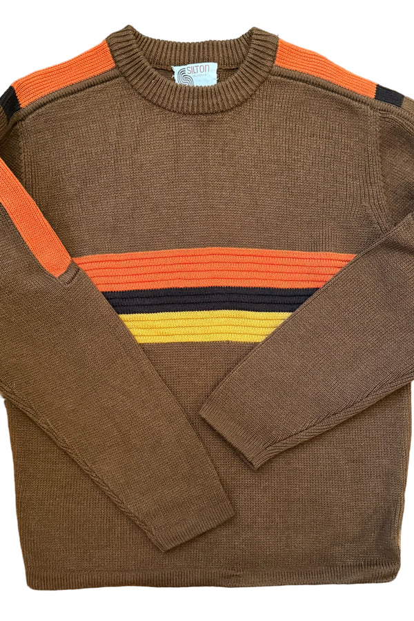 70s Brown Striped Acrylic Pullover Sweater, Accent Colors Stilton California M