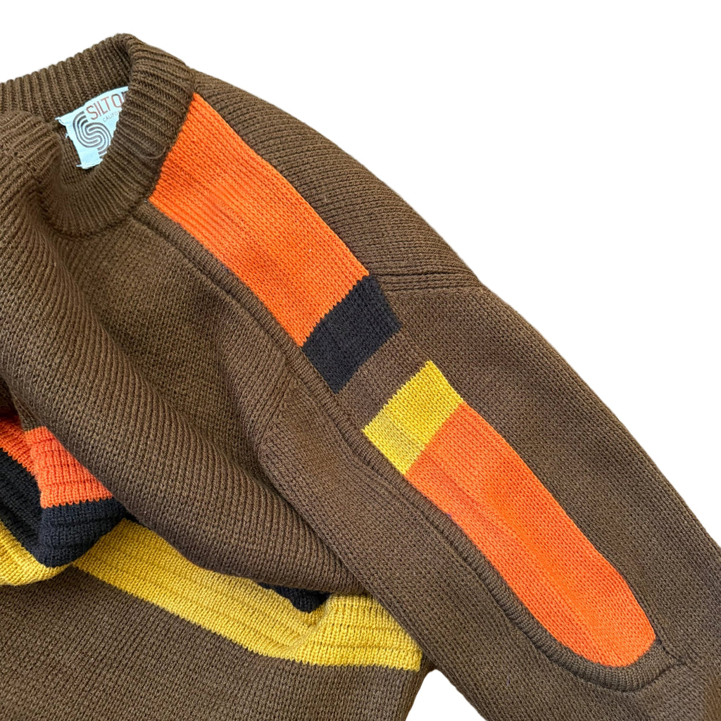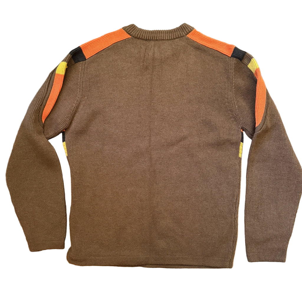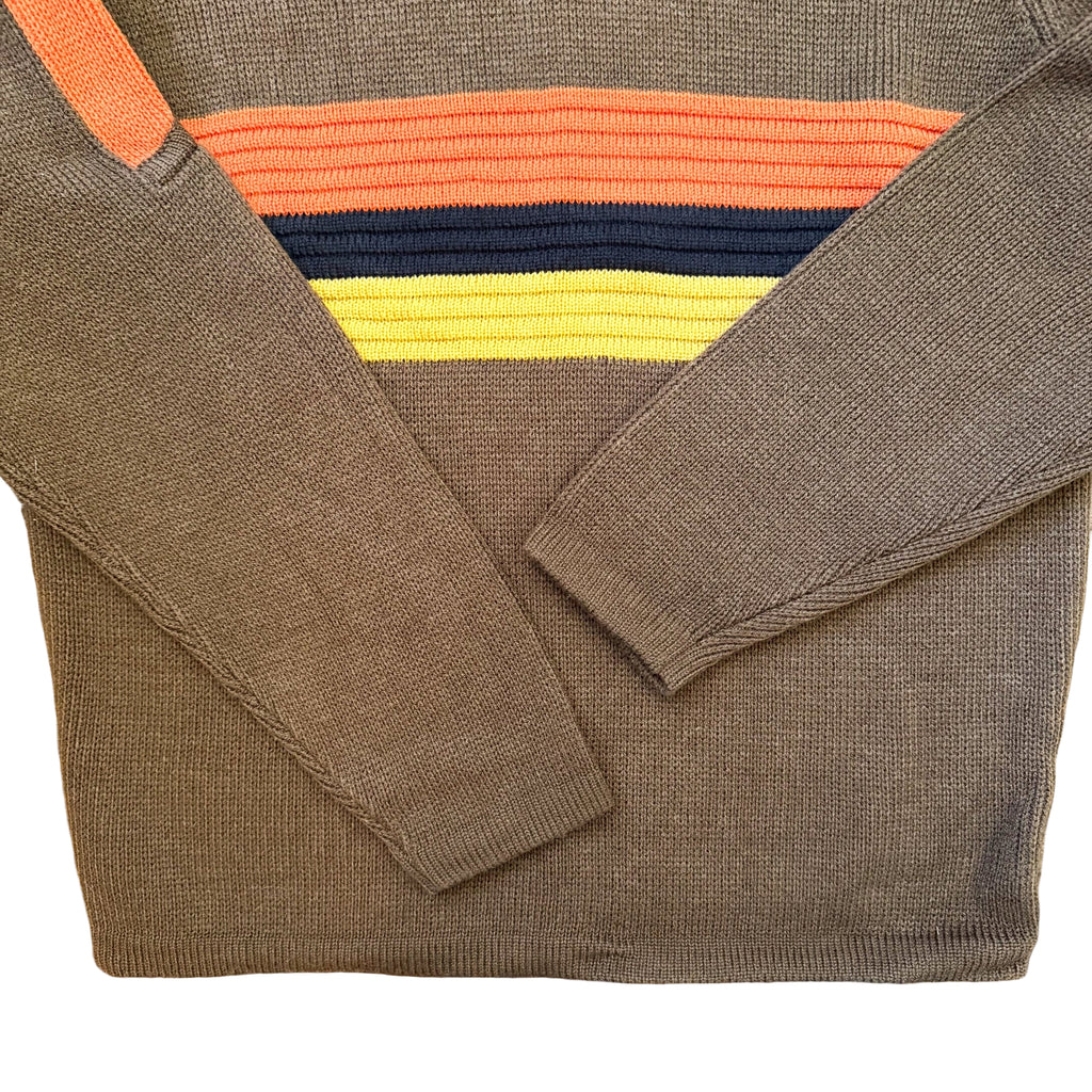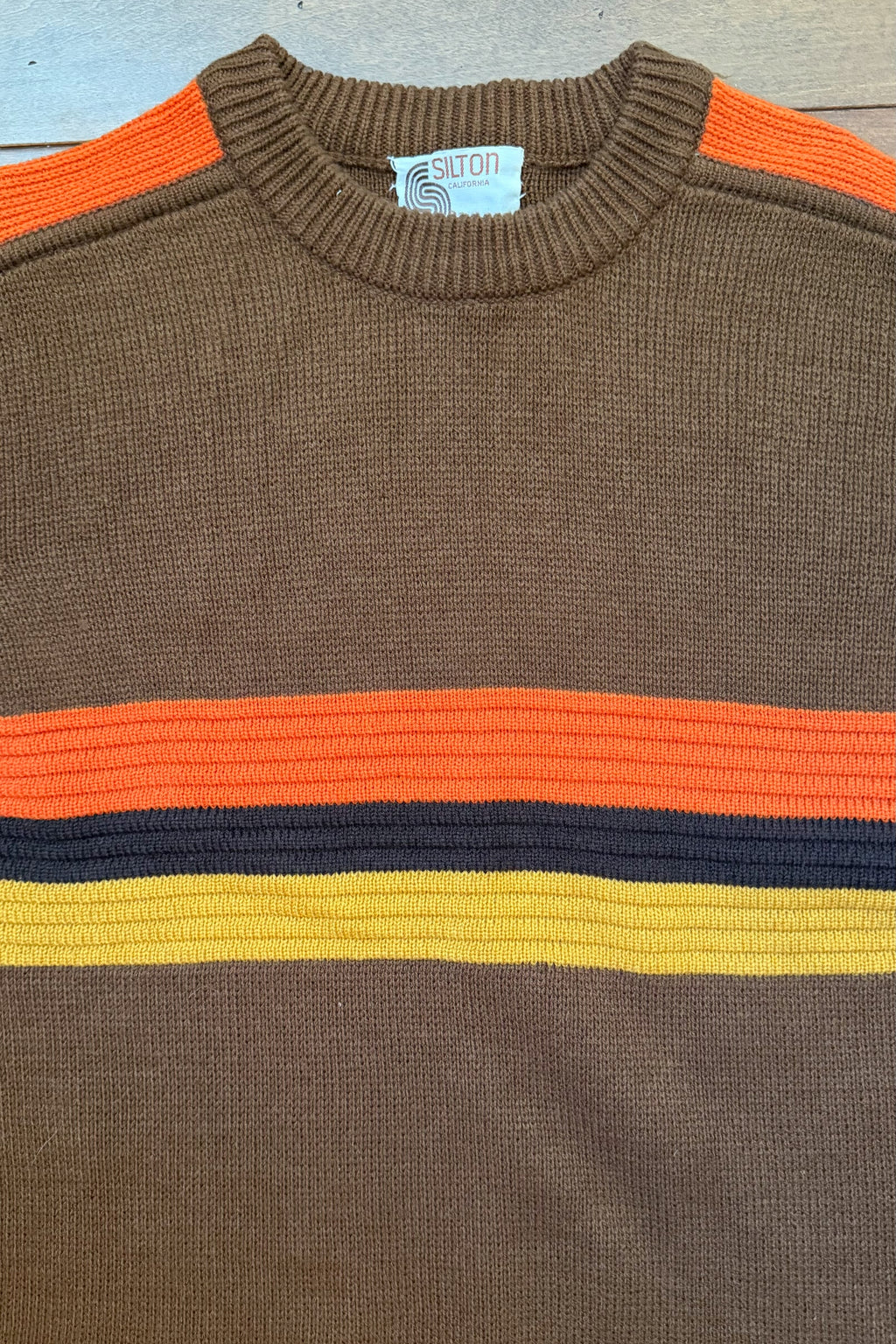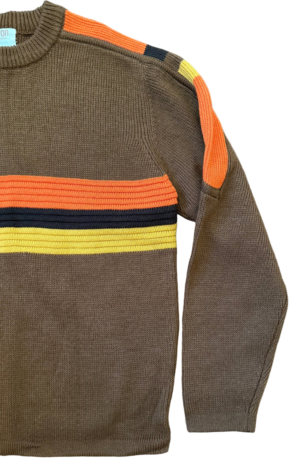 Flat knit, stripe detail front & back, color block long sleeve sweater.