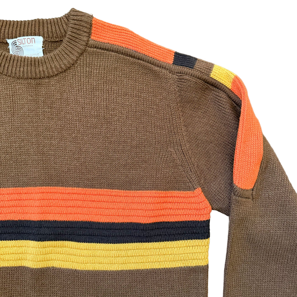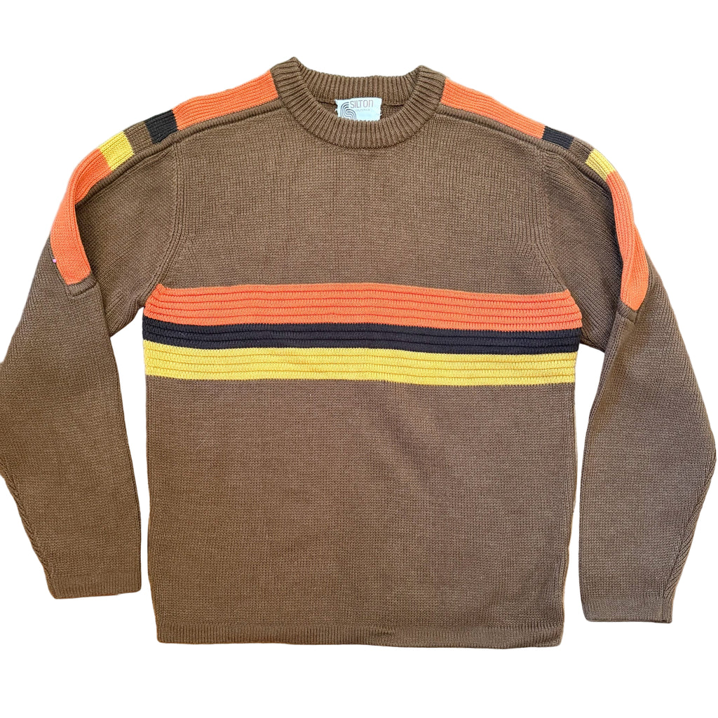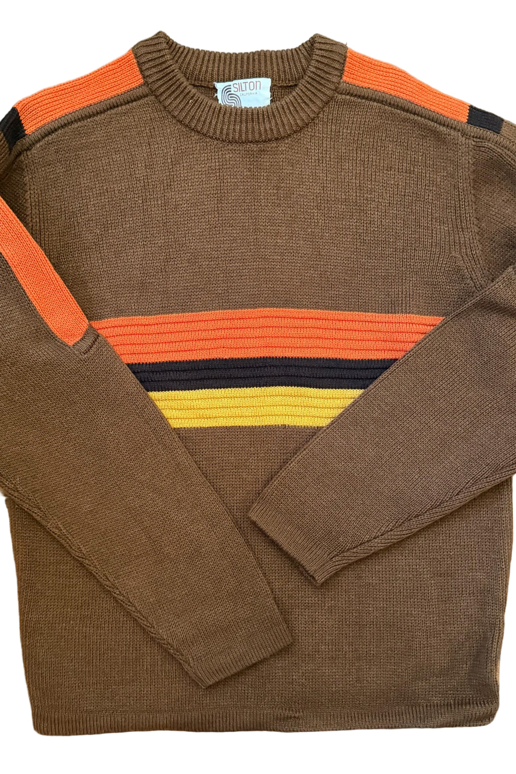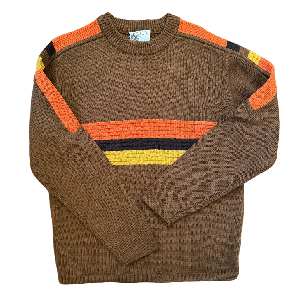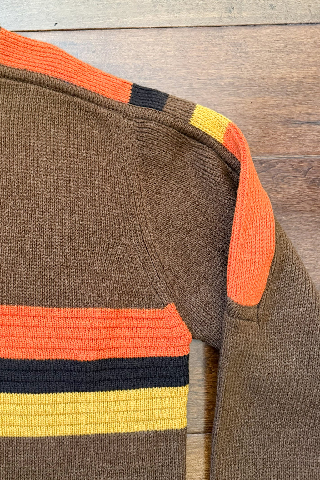 Flat knit, stripe detail front & back, color block long sleeve sweater.