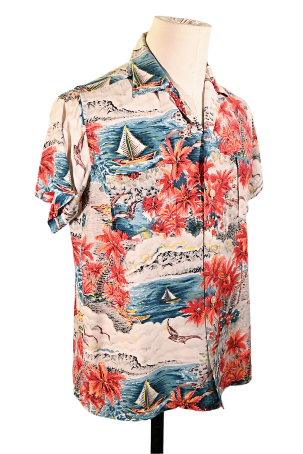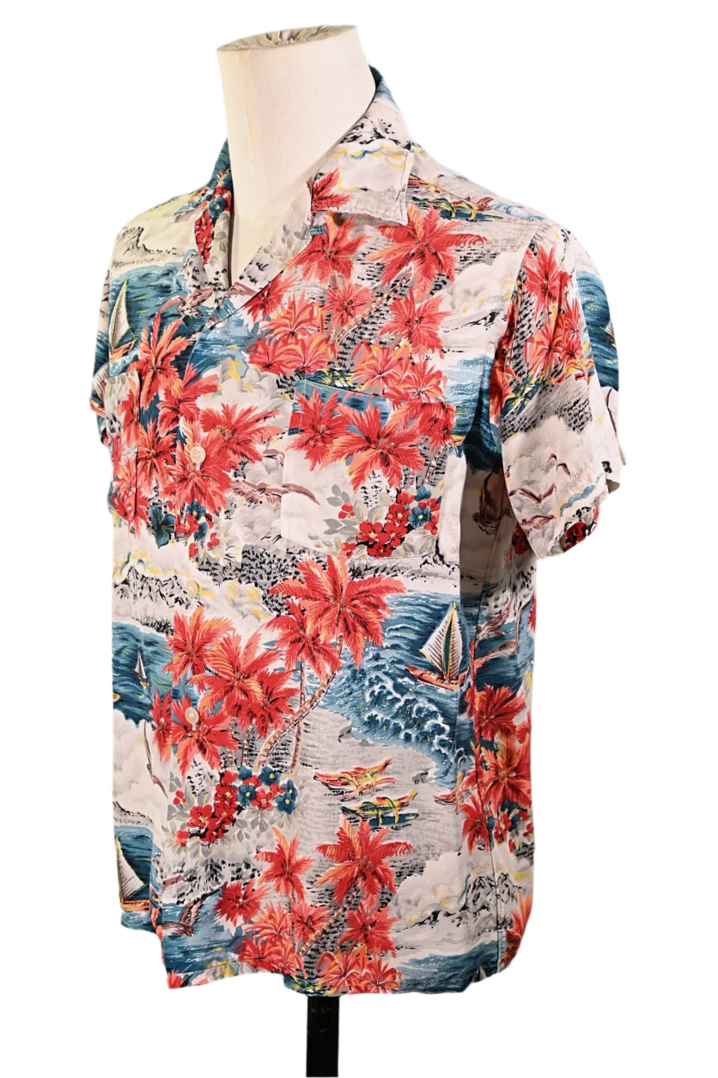Nice picturesque screen printed Hawaiian shirt.