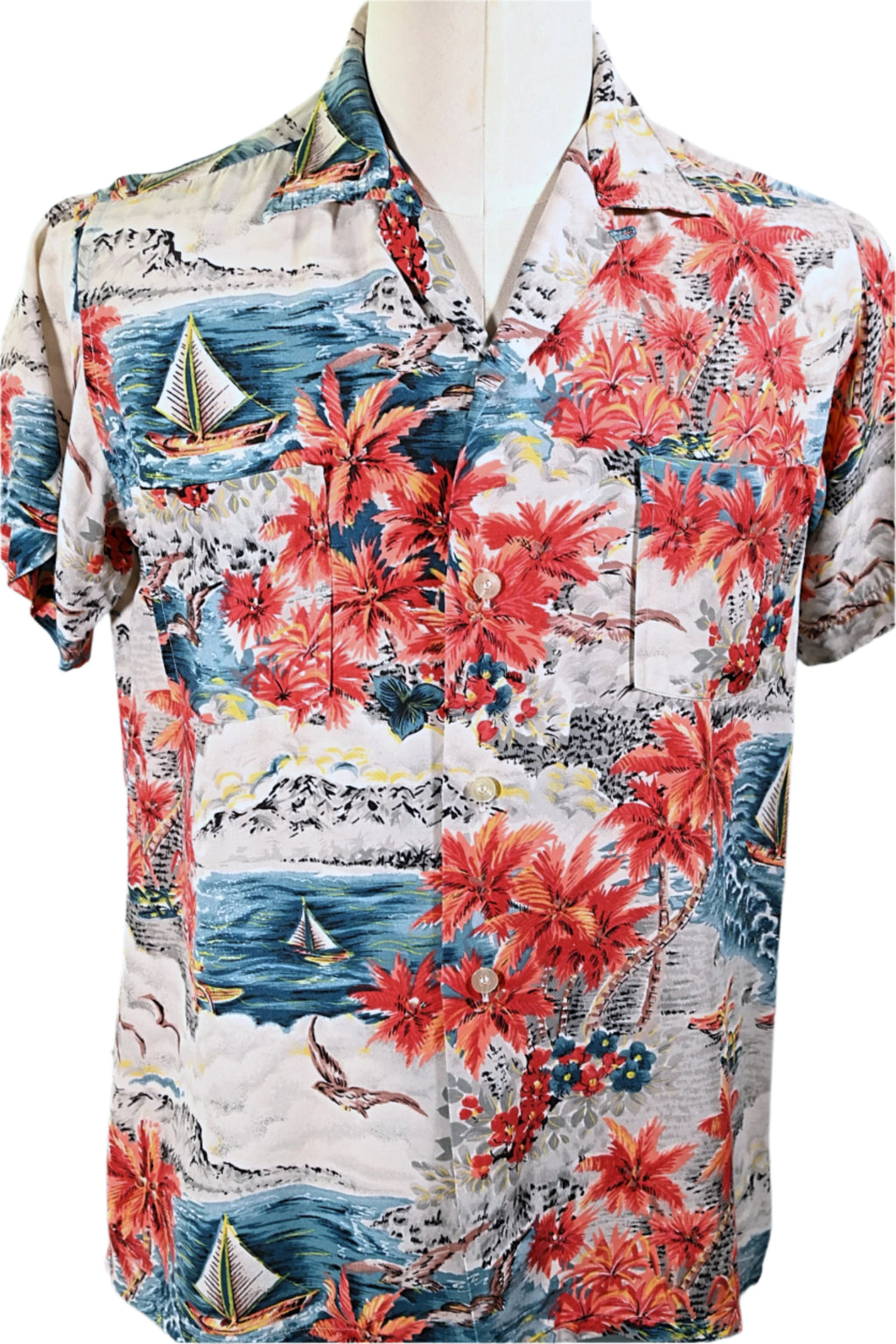 LABEL: Aloha, Screen print all Rayon, made in Japan.