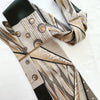 Great bold pattern in the Art Deco style on a silk jacquard tonal background.