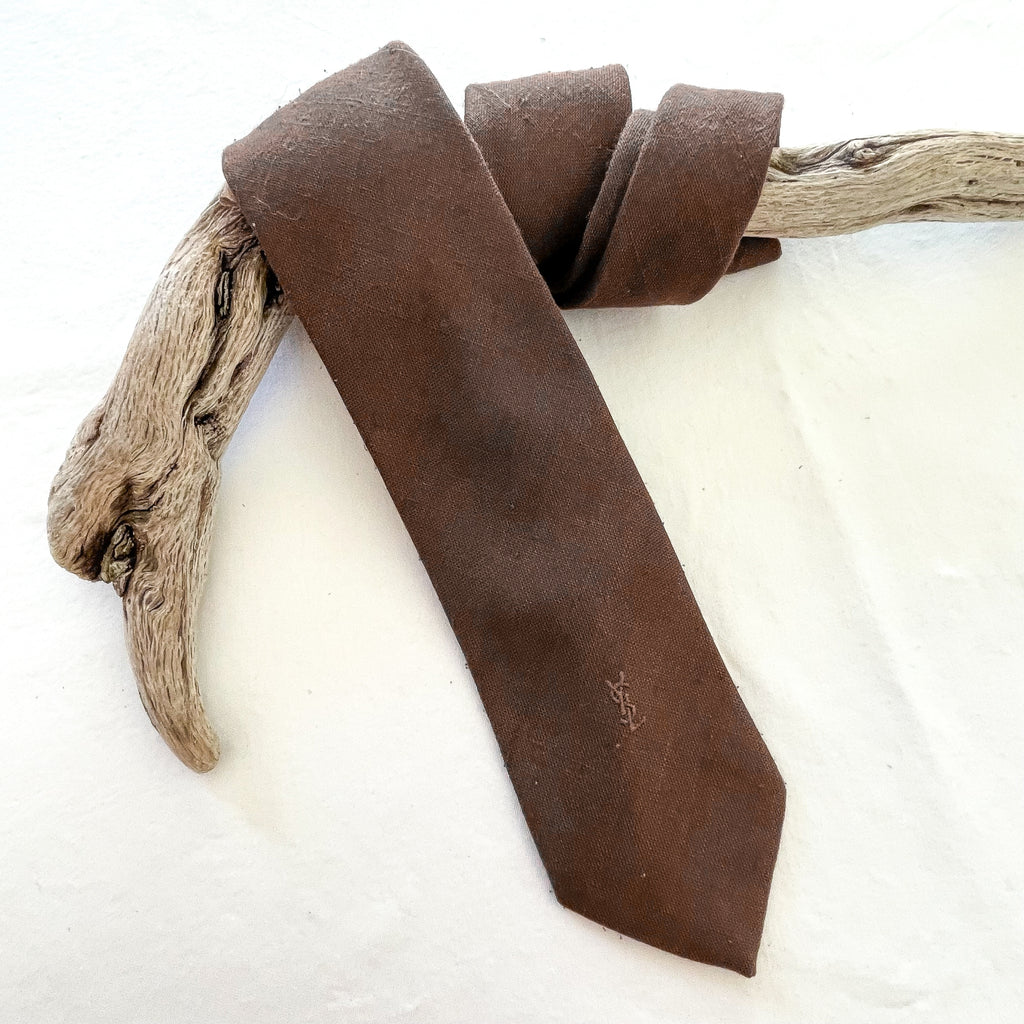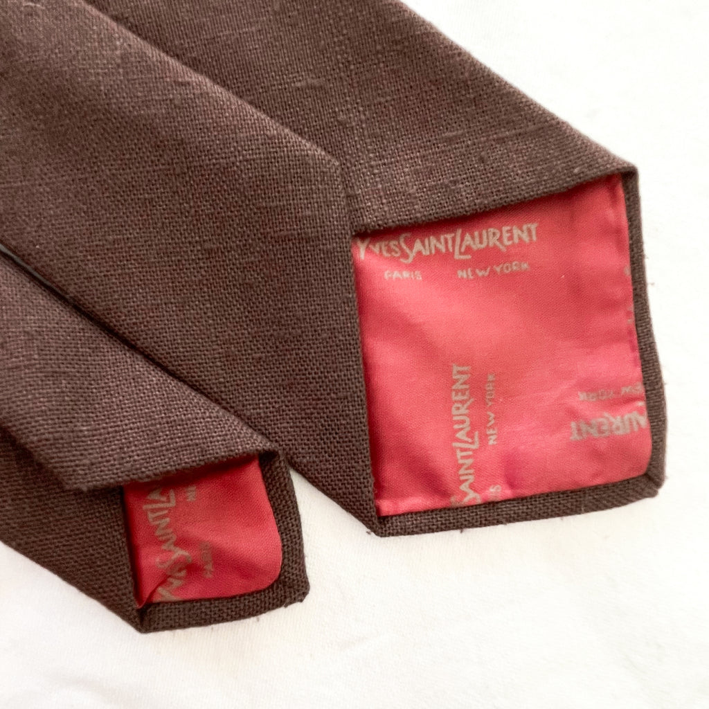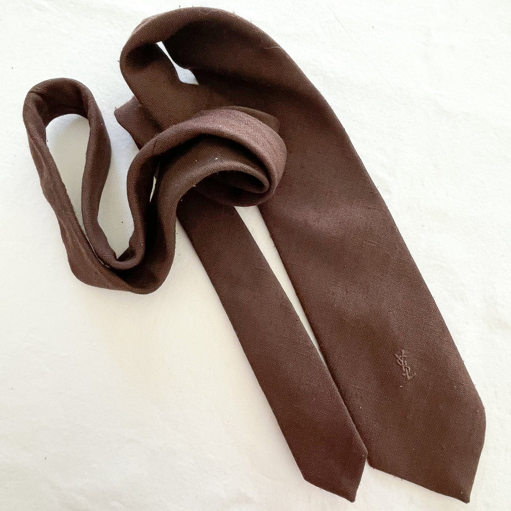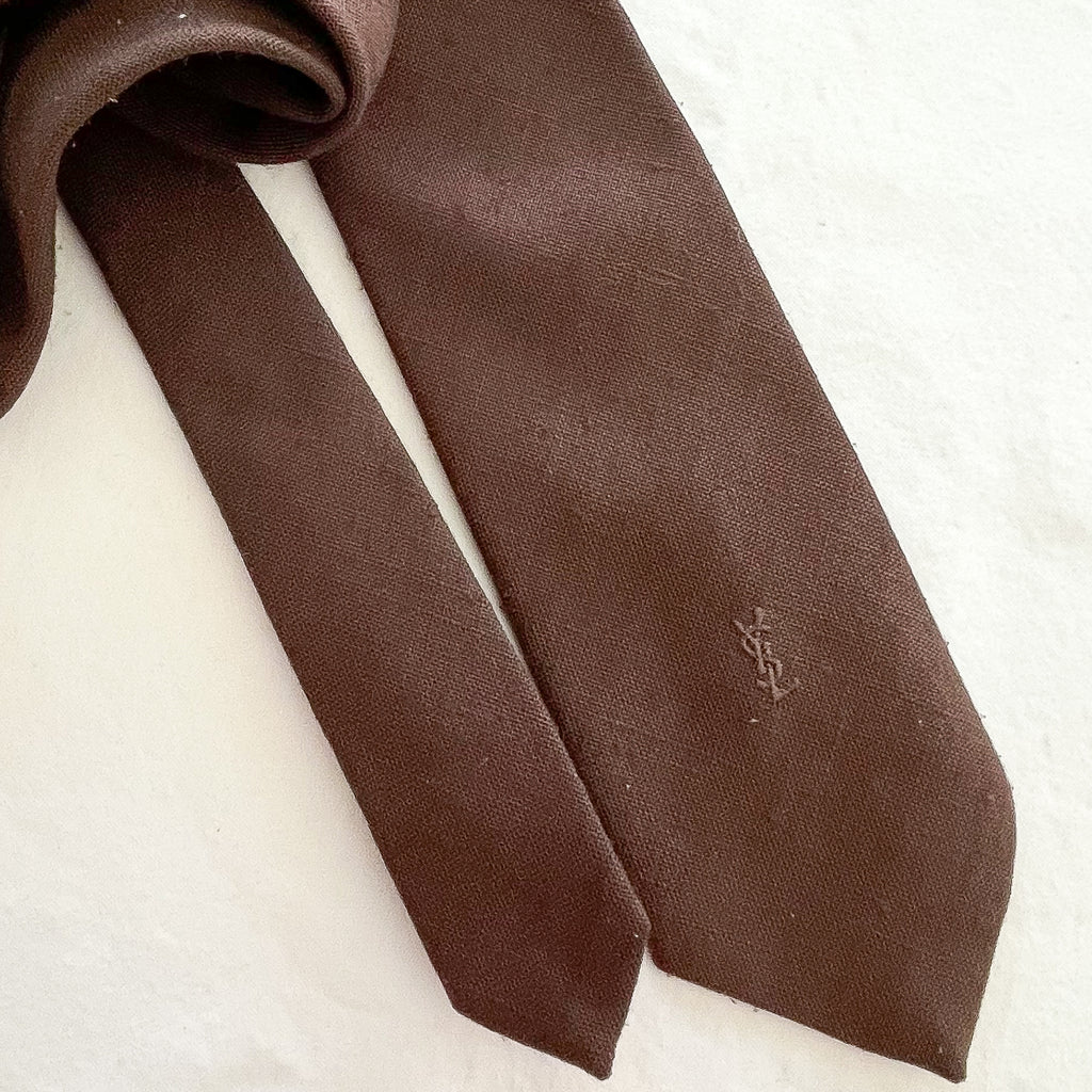 Vintage YSL Brown Linen Tie, Yves Saint Laurent Brown Tie 57" L x 3" W