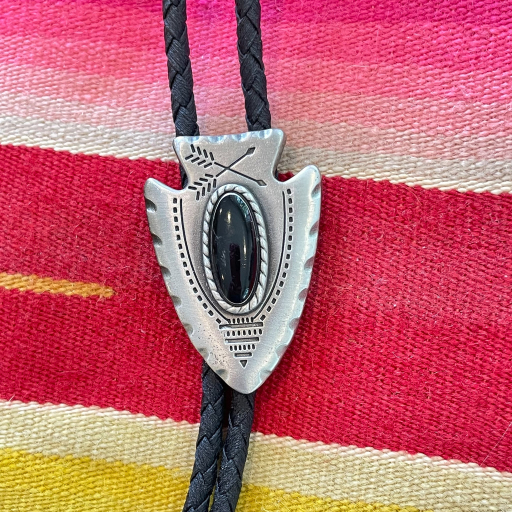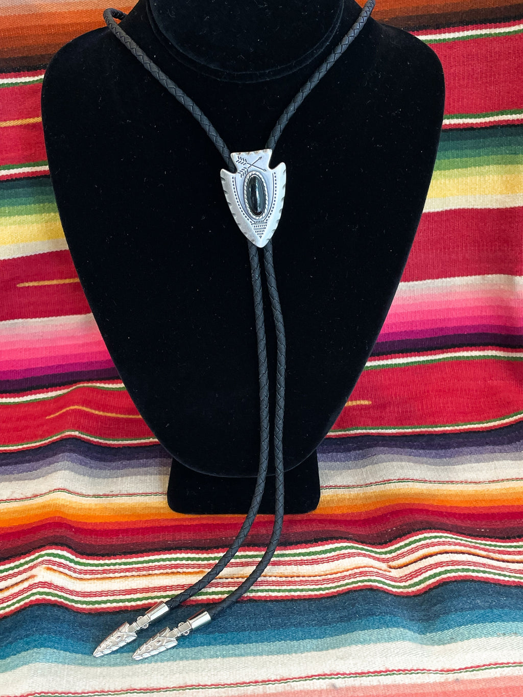 Vintage silver tone pewter finish arrowhead bolo tie.