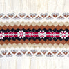Cream color with red, brown, tan, grey, navy accents( navy looks almost black).