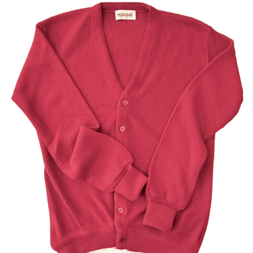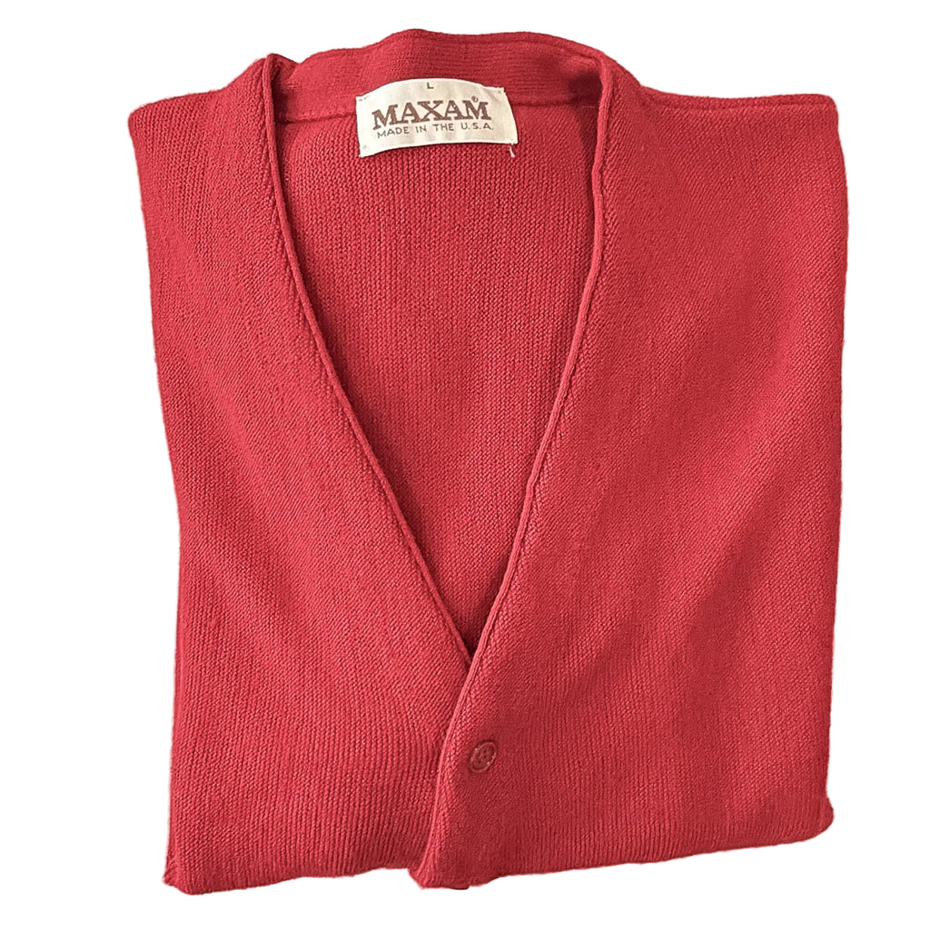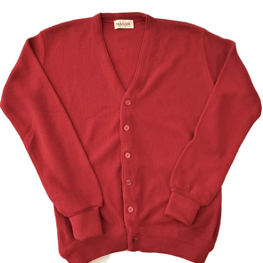 Vintage 60s red cardigan, V neckline.