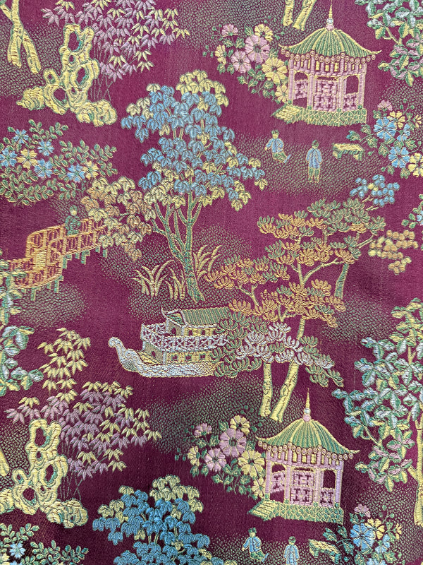 Vintage Mens Silk Smoking Jacket, Chinese Pattern Shawl Collar + Belt