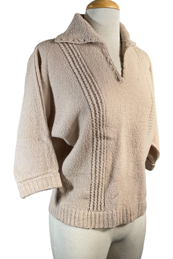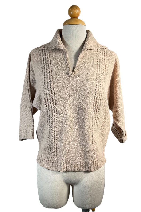 Vintage 40s Beige Boucle Sweater, Imperfect M