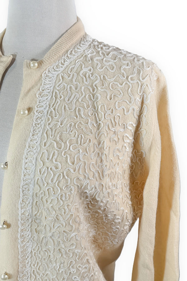 Vintage 50s Jantzen Wool Ribbon Soutache Cardigan Sweater SZ 40