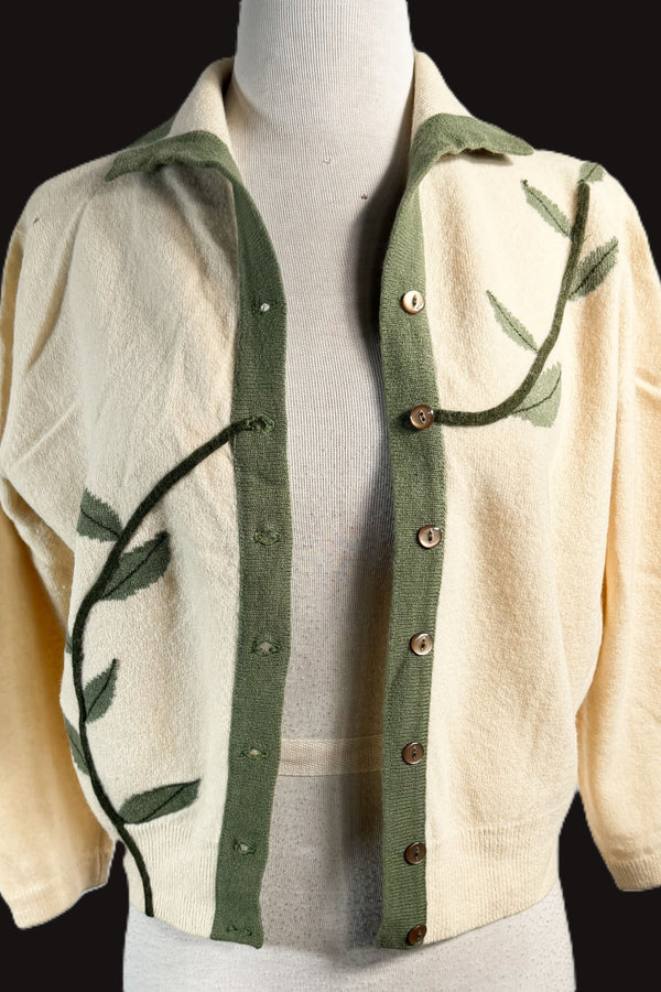 SOLD Colebrook Vintage 50s Cardigan Sweater w/Leaf Details S