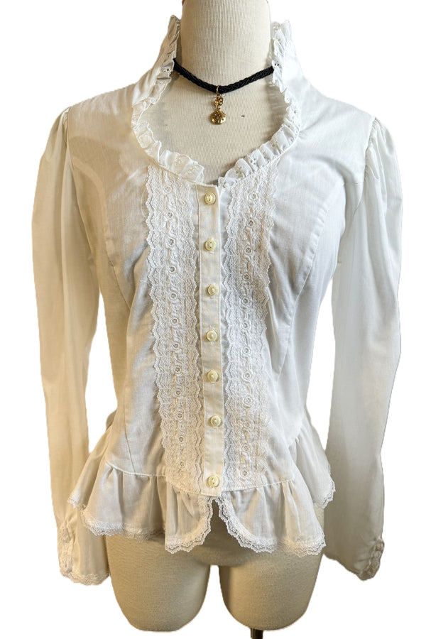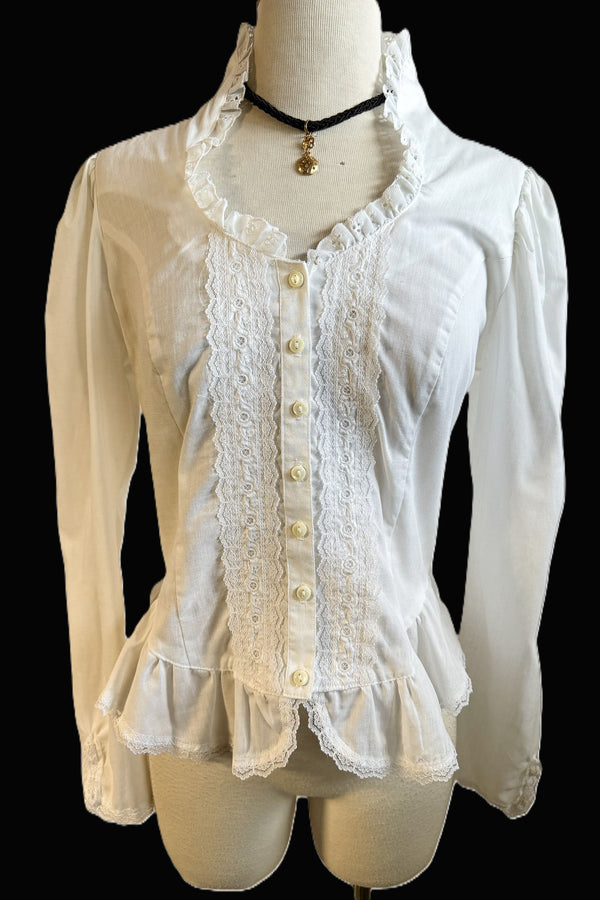 Vintage White Victorian Revival Prairie Blouse w/Peplum Sandy Lane