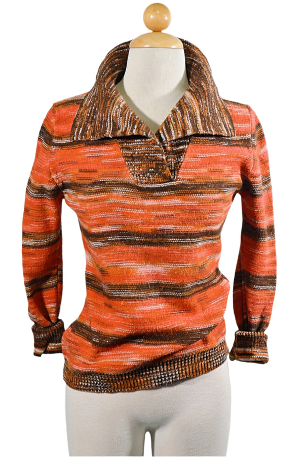 Vintage 70s Orange/Multicolor Pullover Sweater XS/S