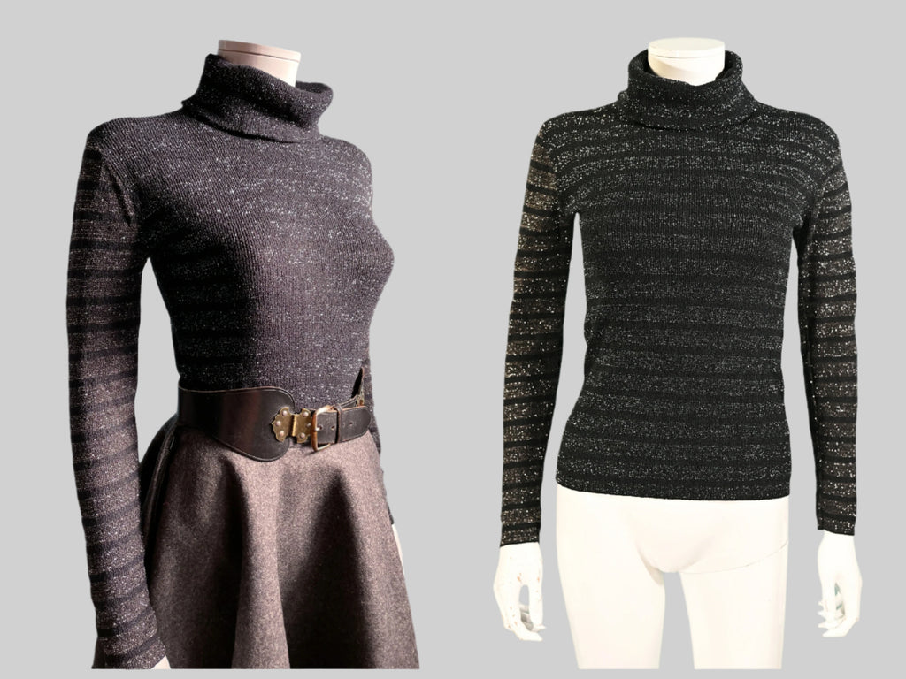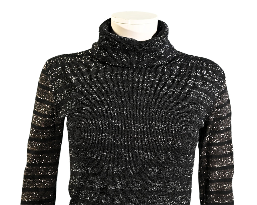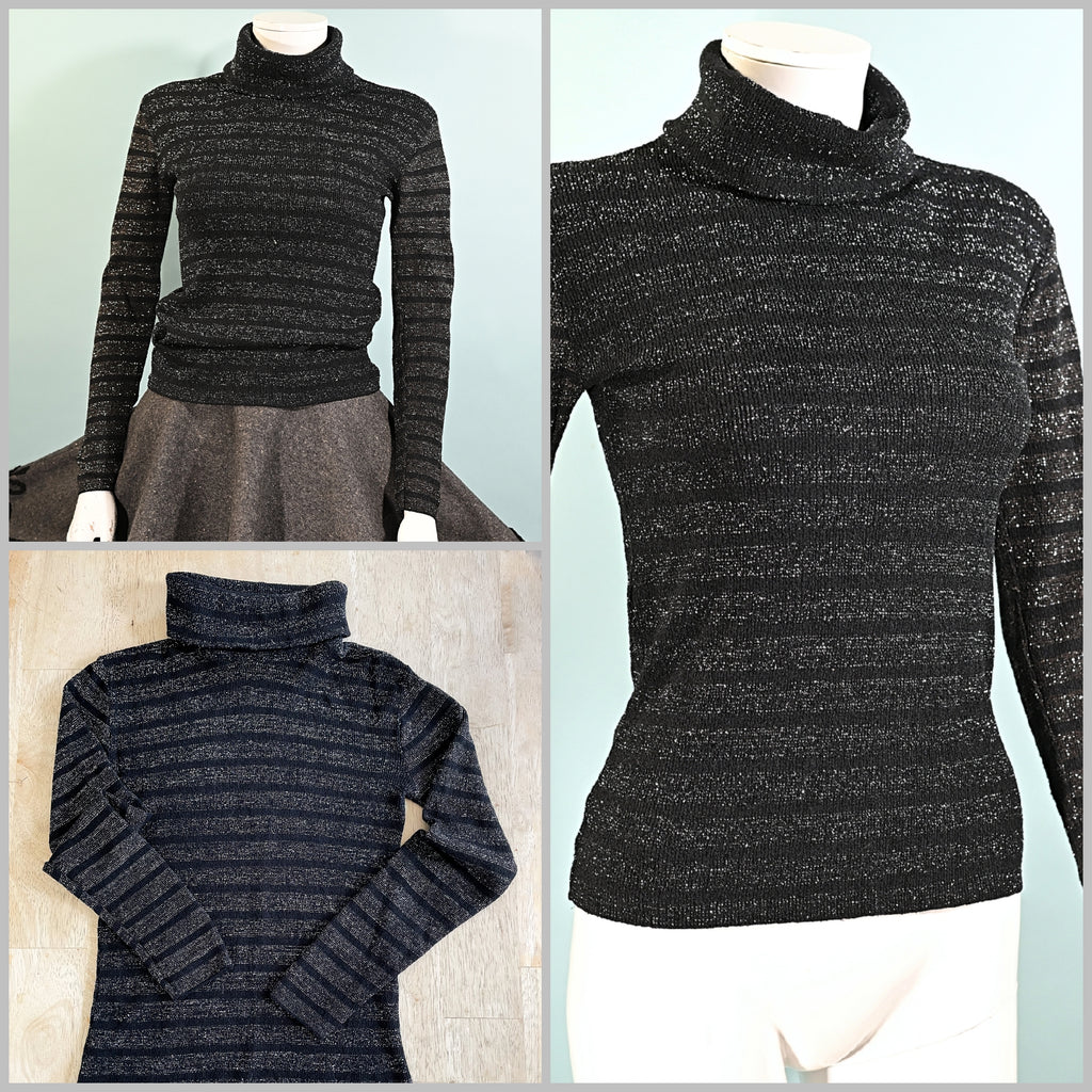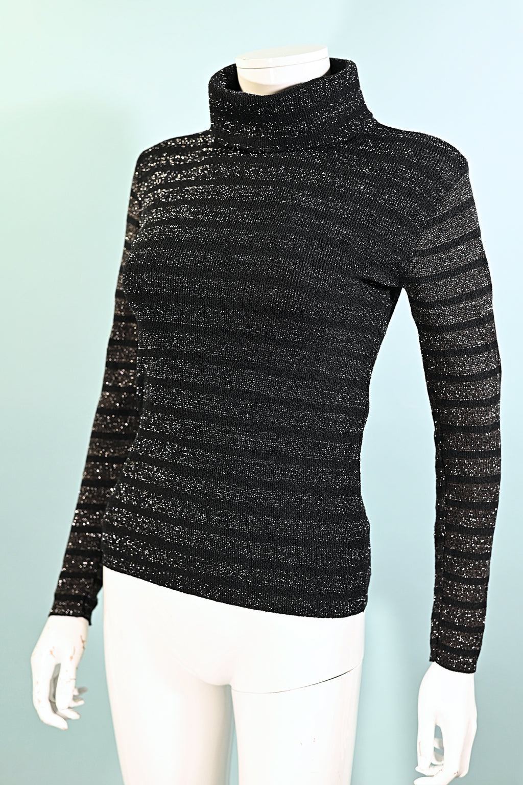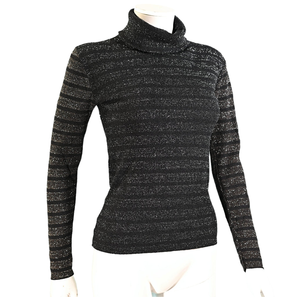The body is black w/Lurex stripes, the sleeves are dark charcoal gray w/Lurex & black stripes.