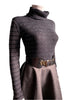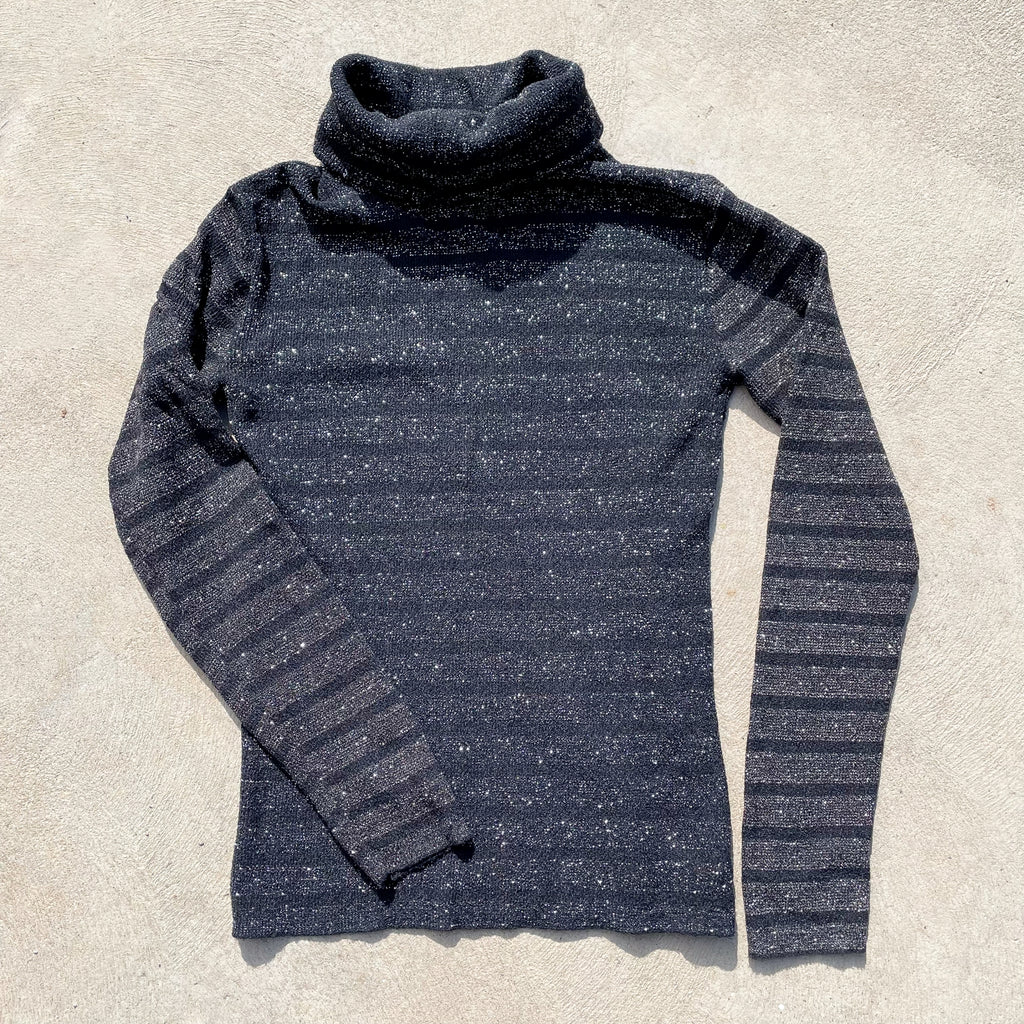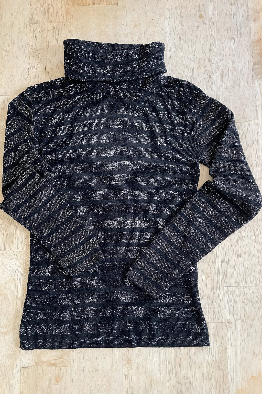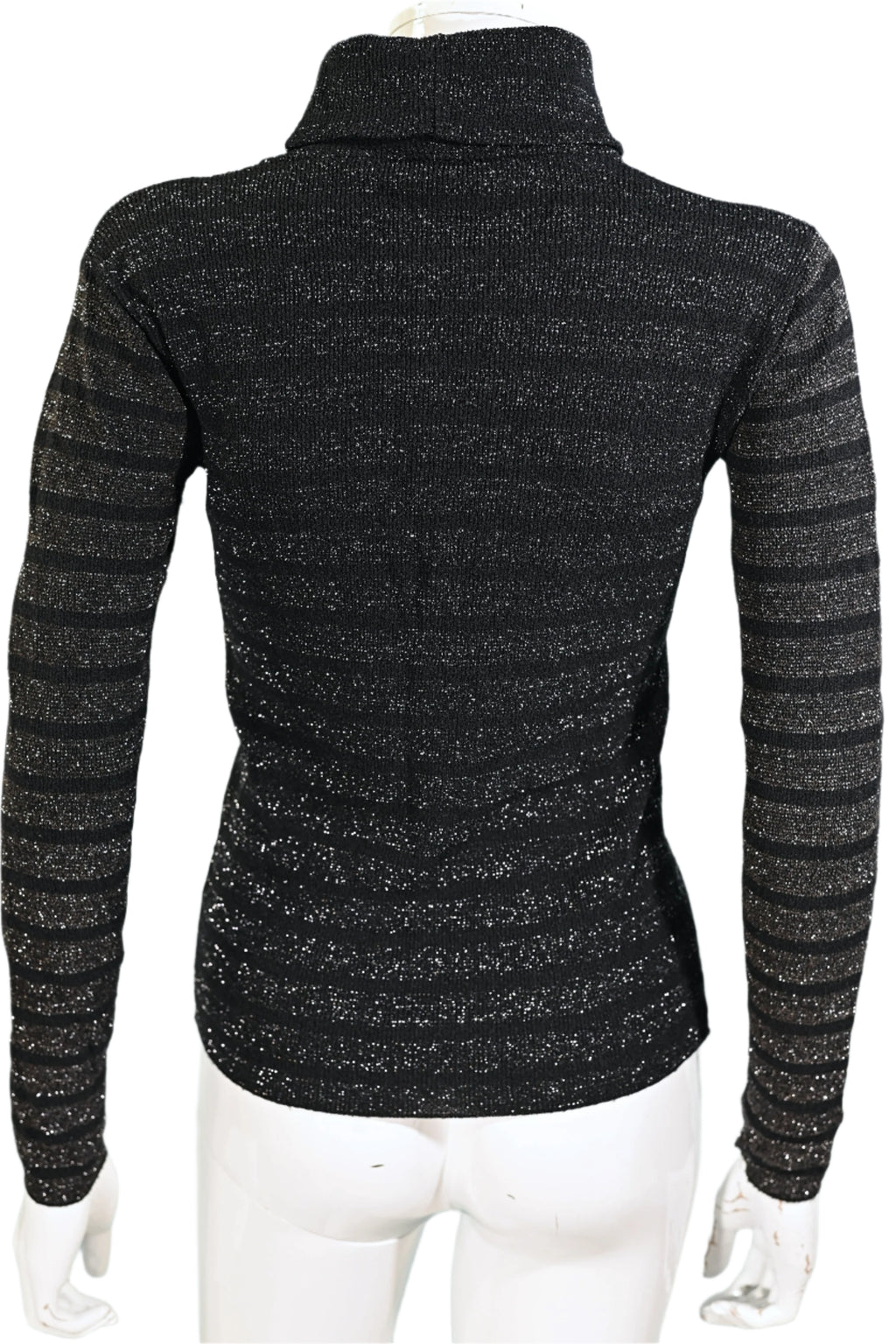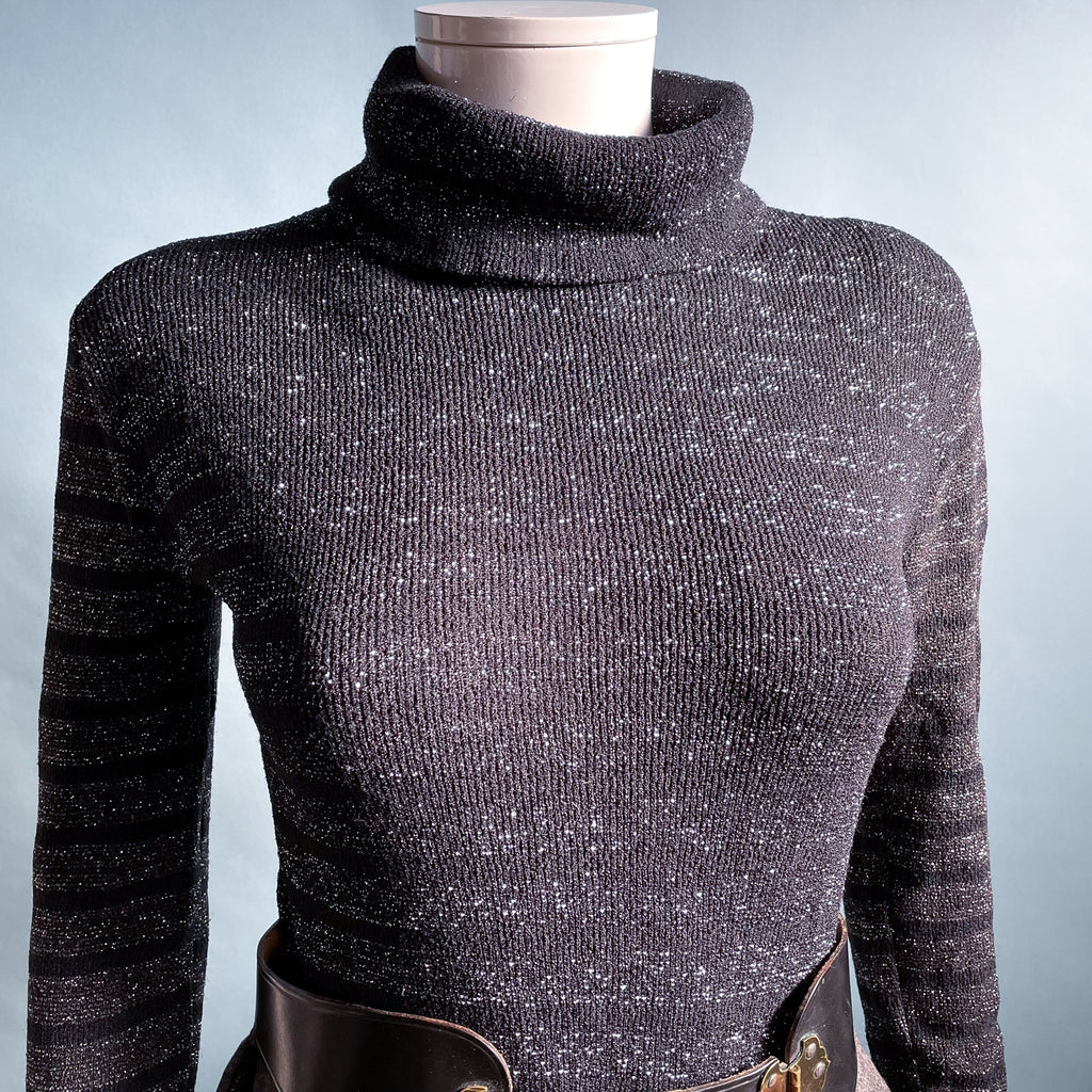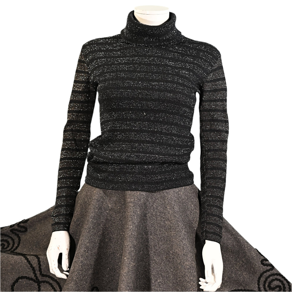 The body is black w/Lurex stripes, the sleeves are dark charcoal gray w/Lurex & black stripes.