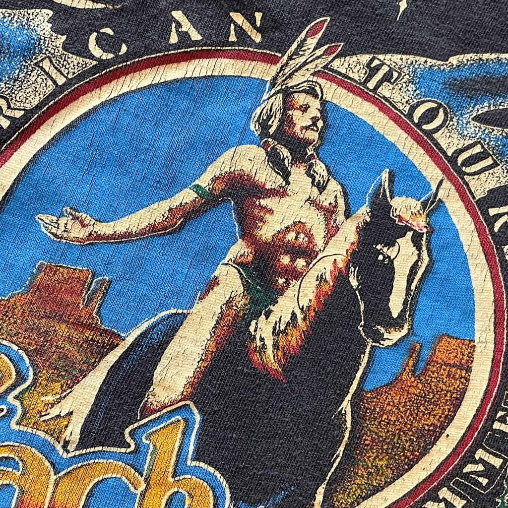Awesome shirt with a horse mounted Native American Indian on the front & back.