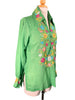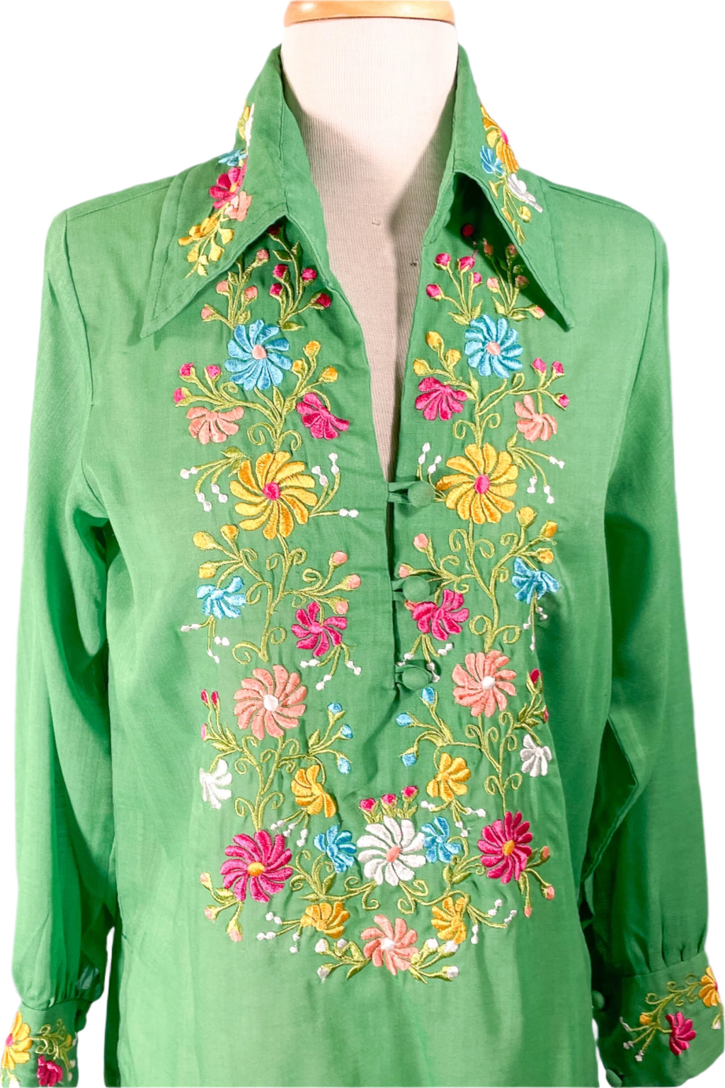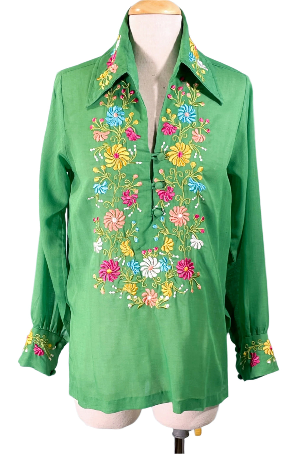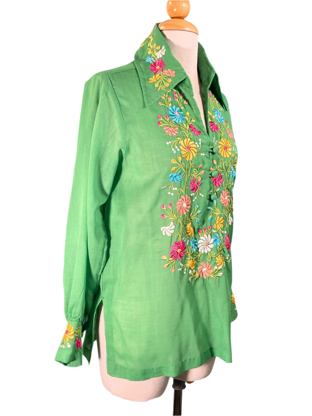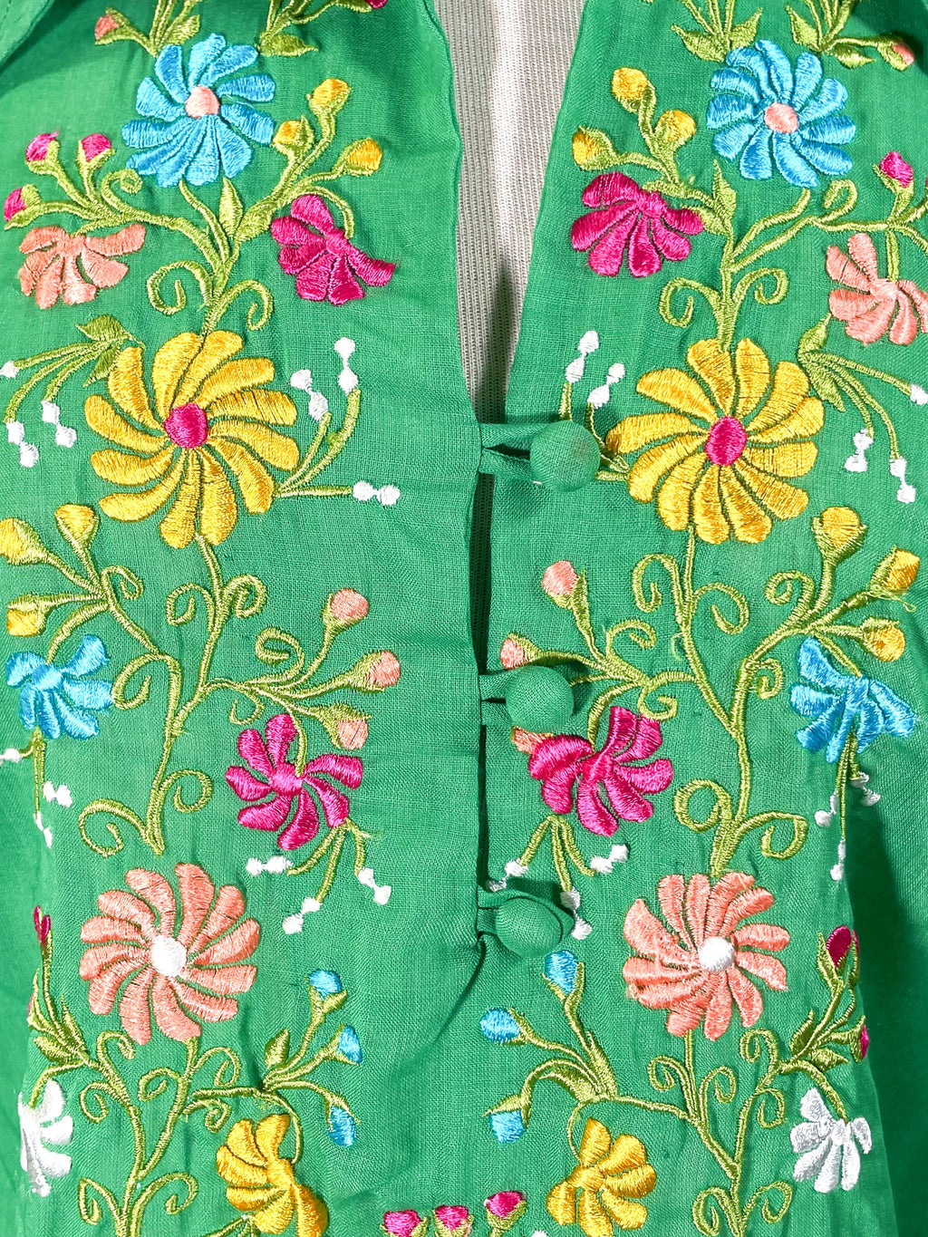Lightweight cotton or cotton/poly blend, semi sheer.