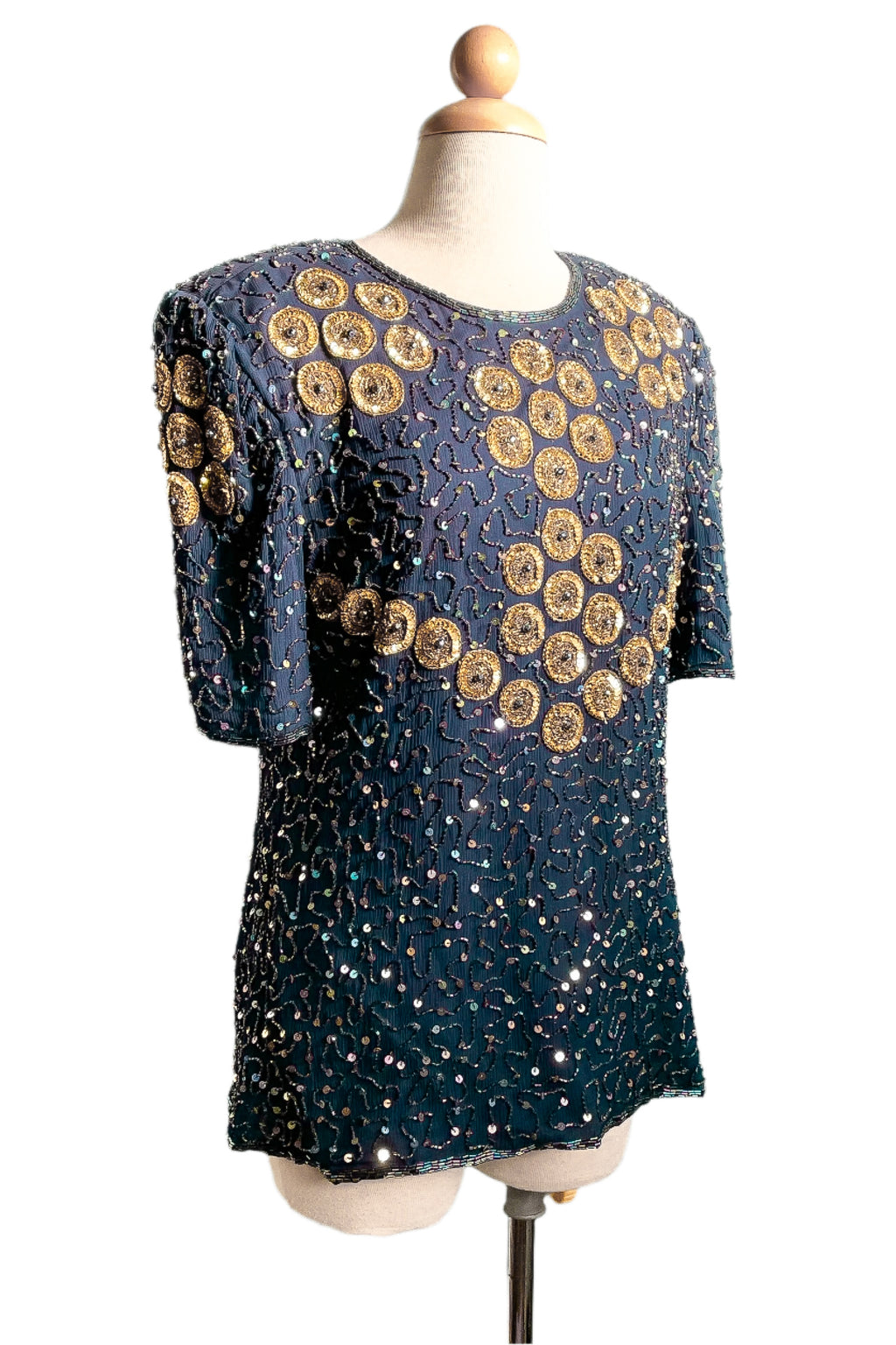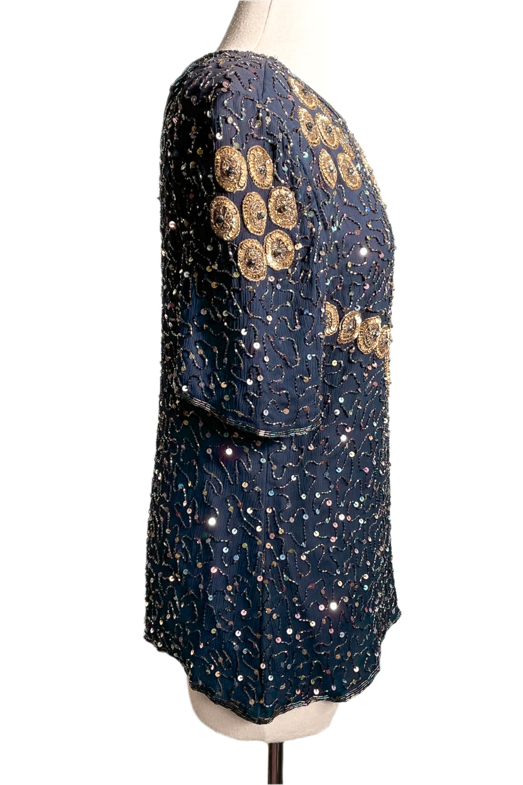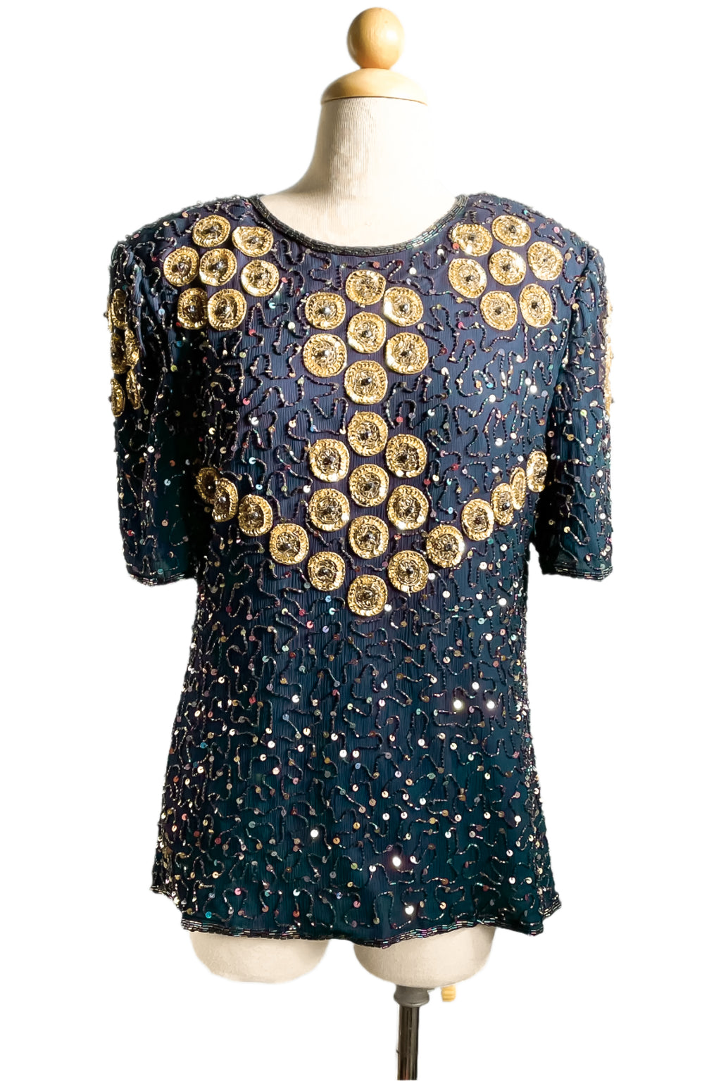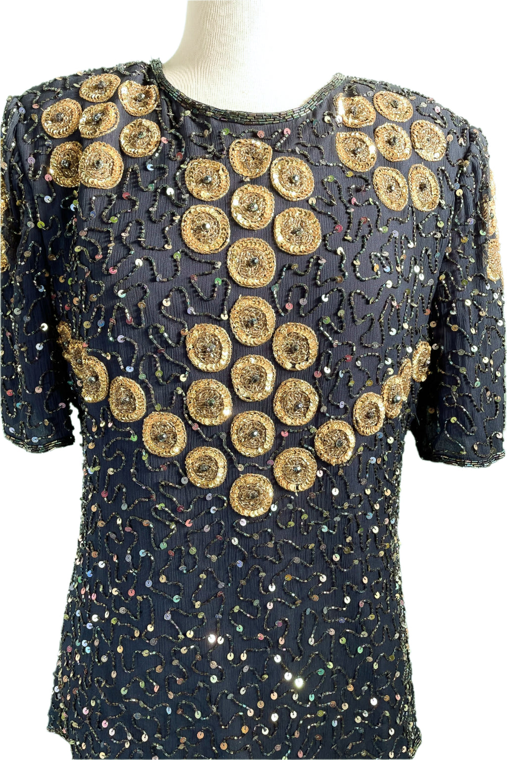 Beautiful vintage silk beaded/sequin top with Art Deco influence.