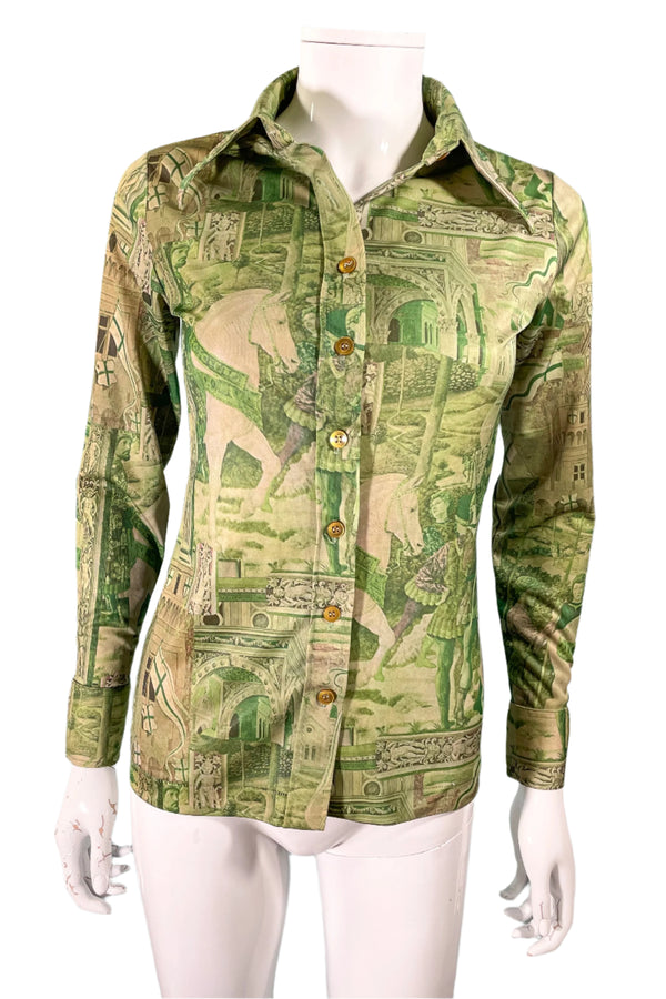 Disco 70s Renaissance/Castles Novelty Print Blouse, East by Jason Silverstein XS