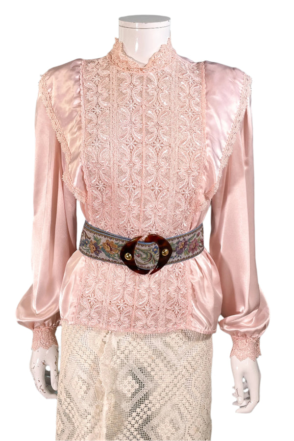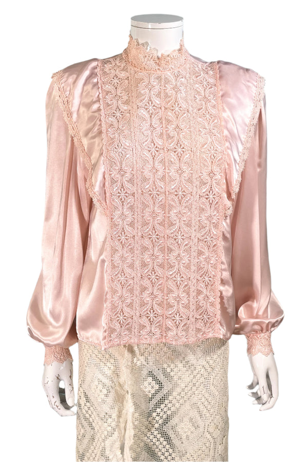 Vintage Pink Victorian Granny Style Blouse, Lace Details by Illusions M