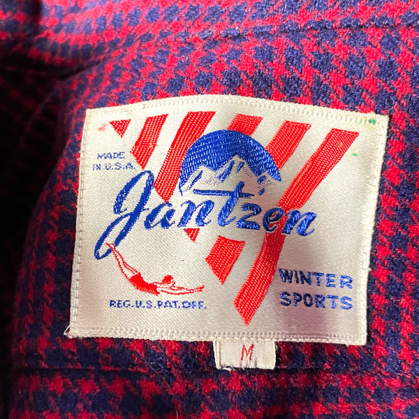 Vintage Jantzen Winter Sports, Wool Red/Blue Houndstooth Check Top M