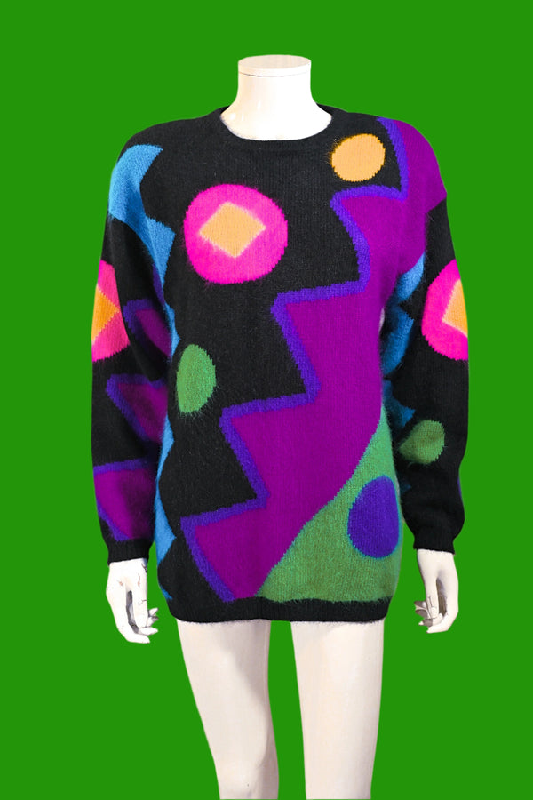 80s New Wave Sweater, Bright Playful Geometric Patterns M