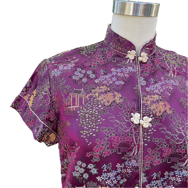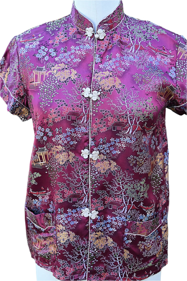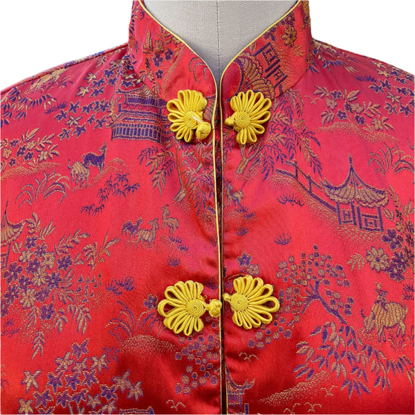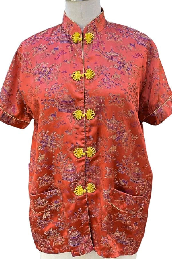 Vintage Chinese Brocade Top, Mandarin Collar S