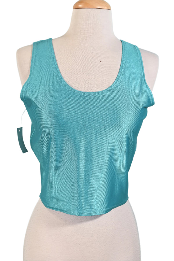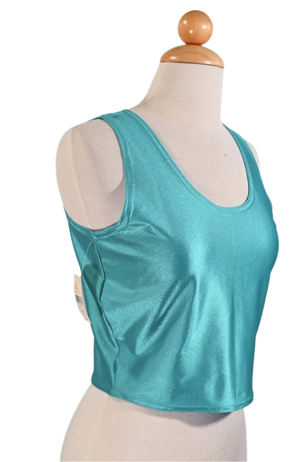 Vintage 80s Turquoise Spandex Crop Top, Deadstock Unworn S/M