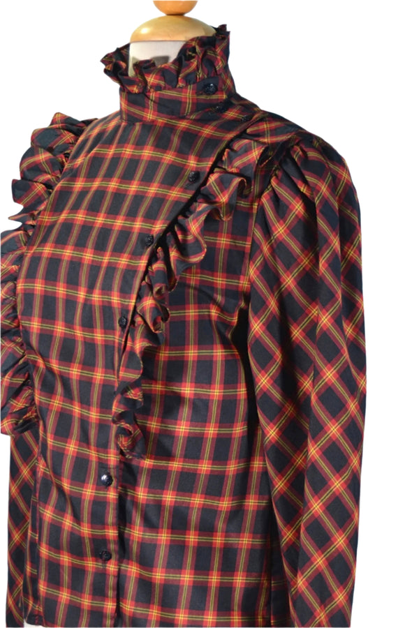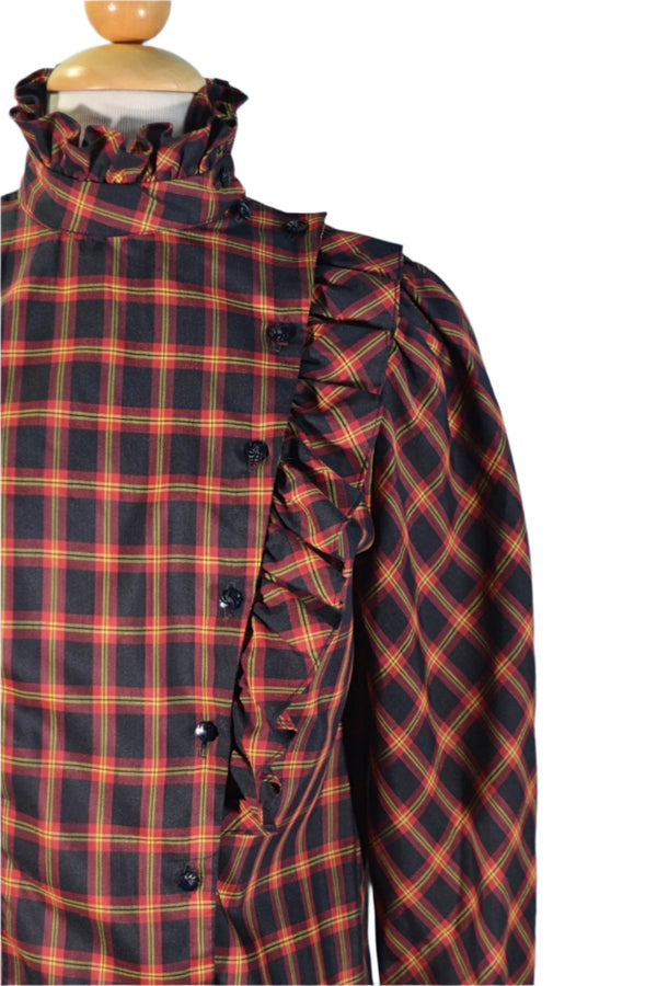 Vintage Ruffled Plaid Prairie Blouse, Victorian Style Cottagecore Top