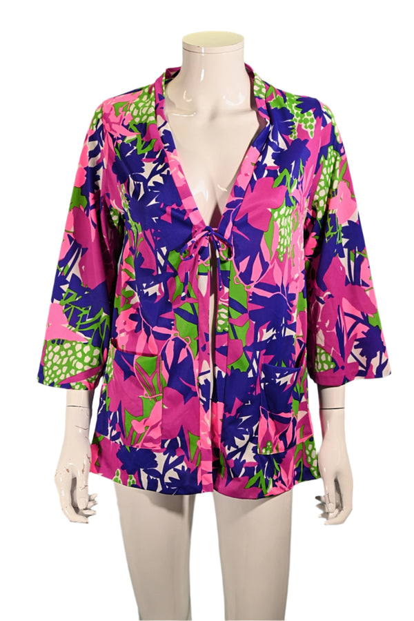 Figurettes Vintage Swimsuit Cover, Bright Abstract Print Top S