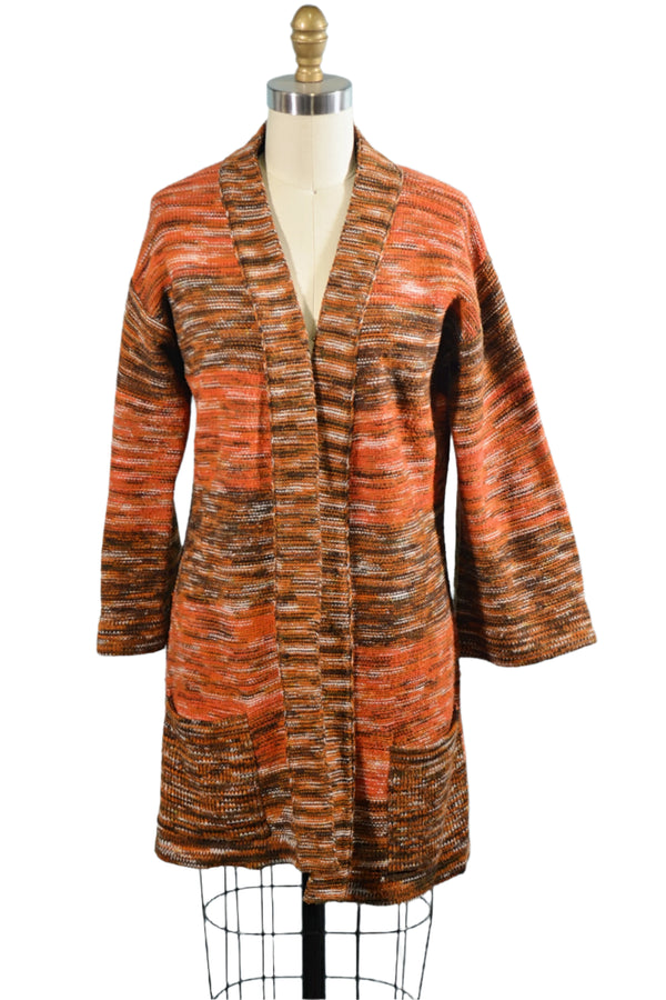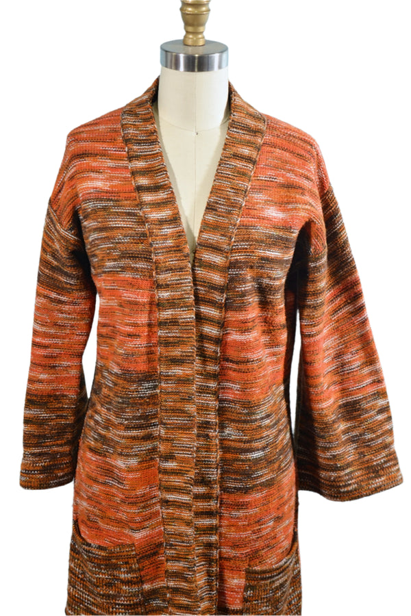 Vintage 70s Orange Boho Cardigan Tunic Sweater, Space Dyed M