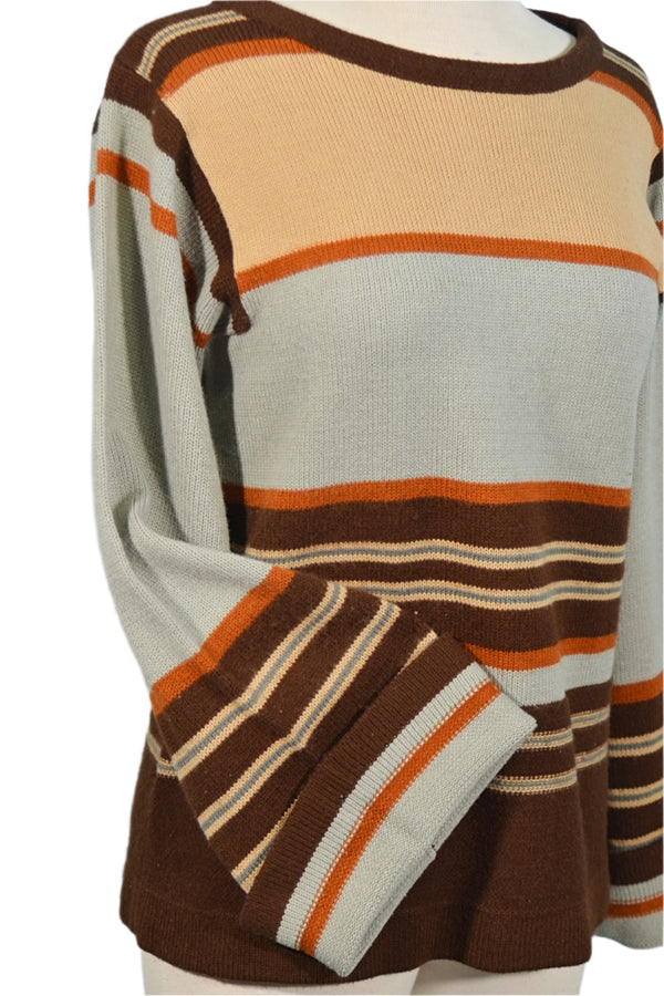 Vintage 60s/70s Acrylic Striped Pullover Sweater, Vegan S