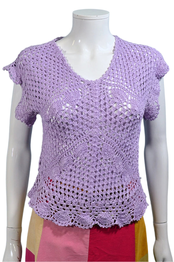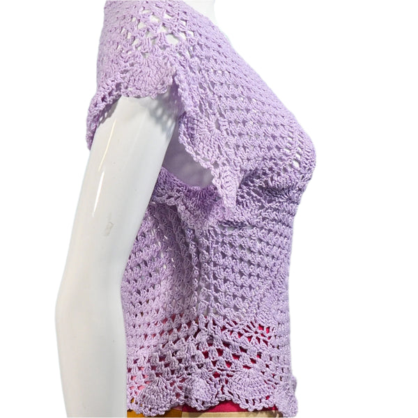 Vintage 60s/70s Lavender Crochet Hippie Cottagecore Top M