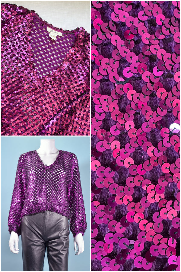 Vintage 70s Magenta Sequin Top, Sparkle Party Top