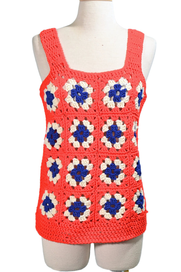 Vintage 70s Granny Square Crochet Top, Americana Cottagecore Handmade OOAK Vest