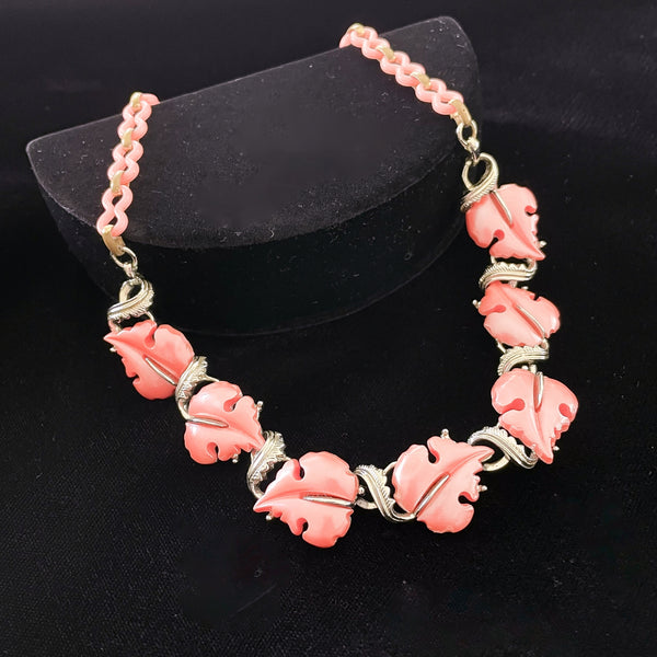 Vintage 50s Lucite Pink Lavender Necklace Earring Set