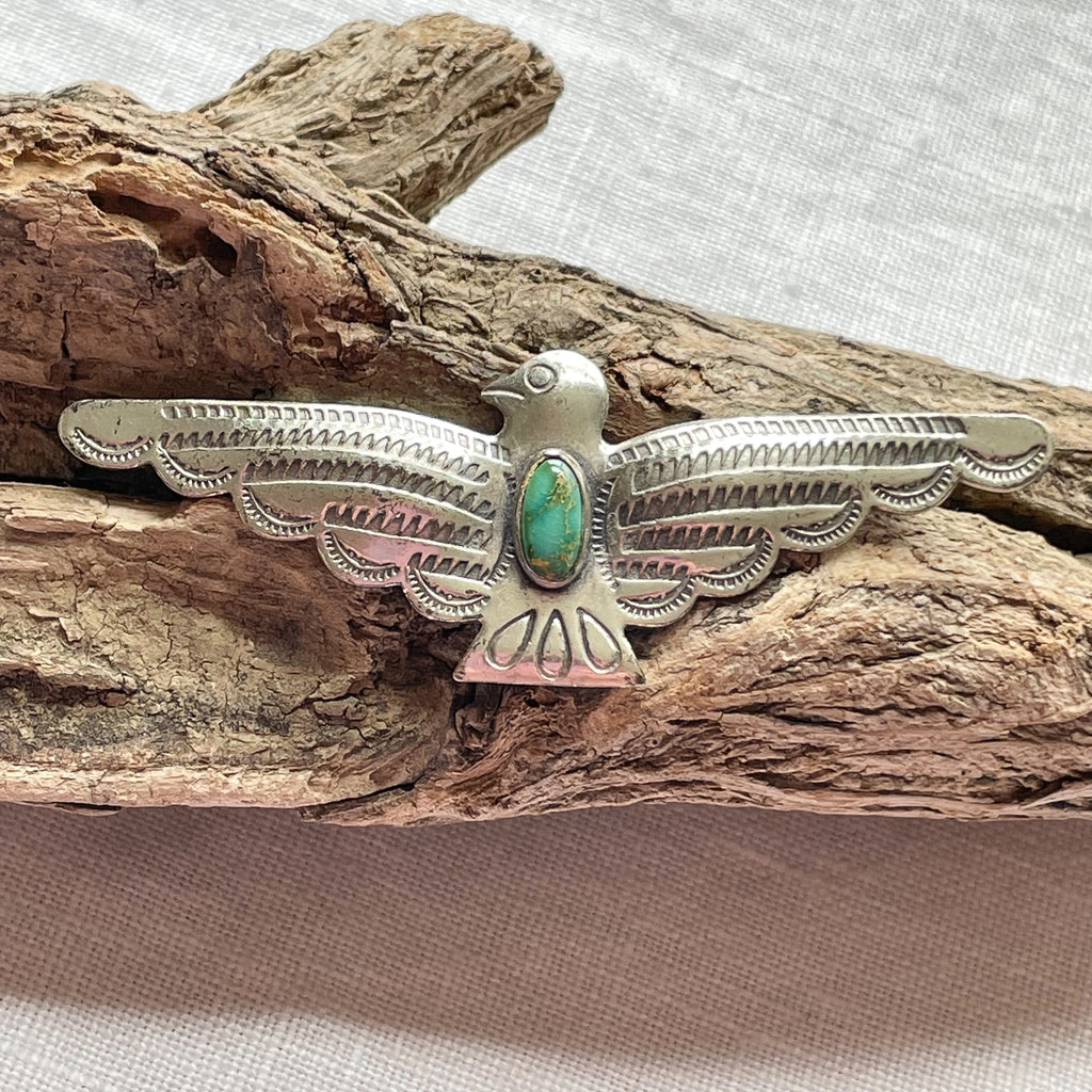 Vintage Fred Harvey silver/turquoise thunderbird brooch.