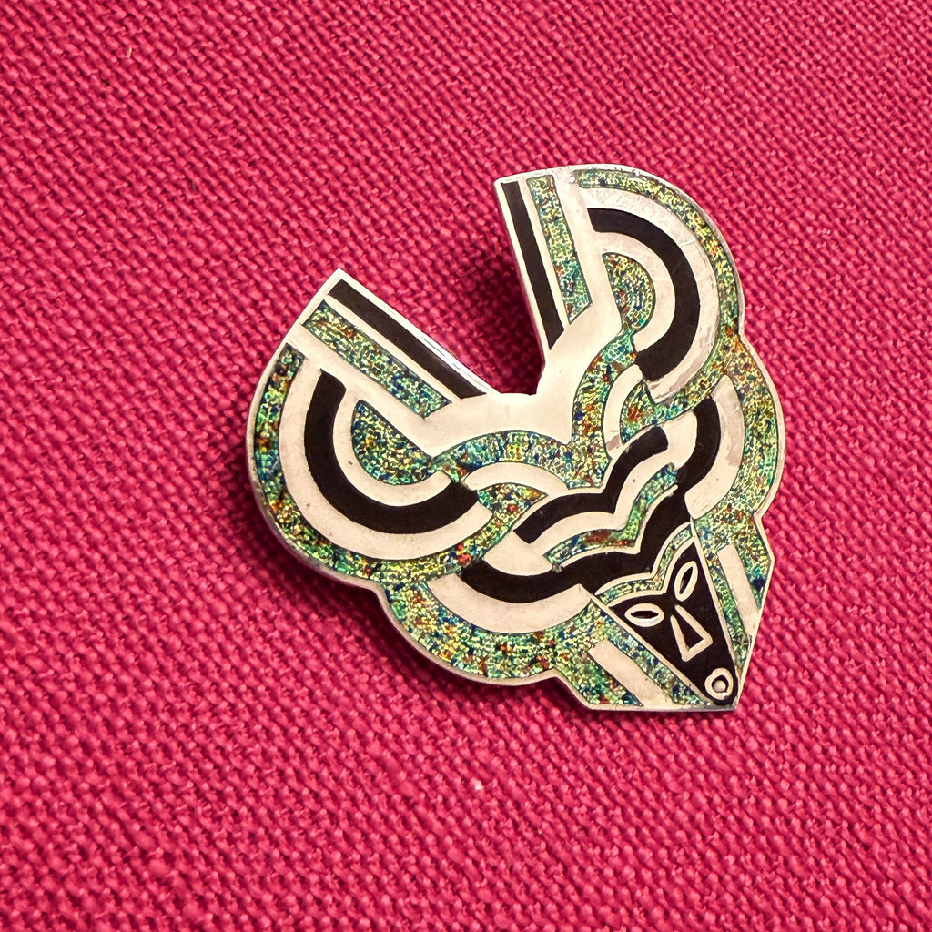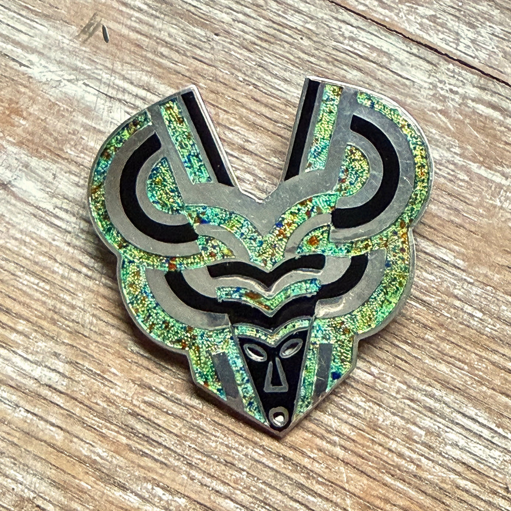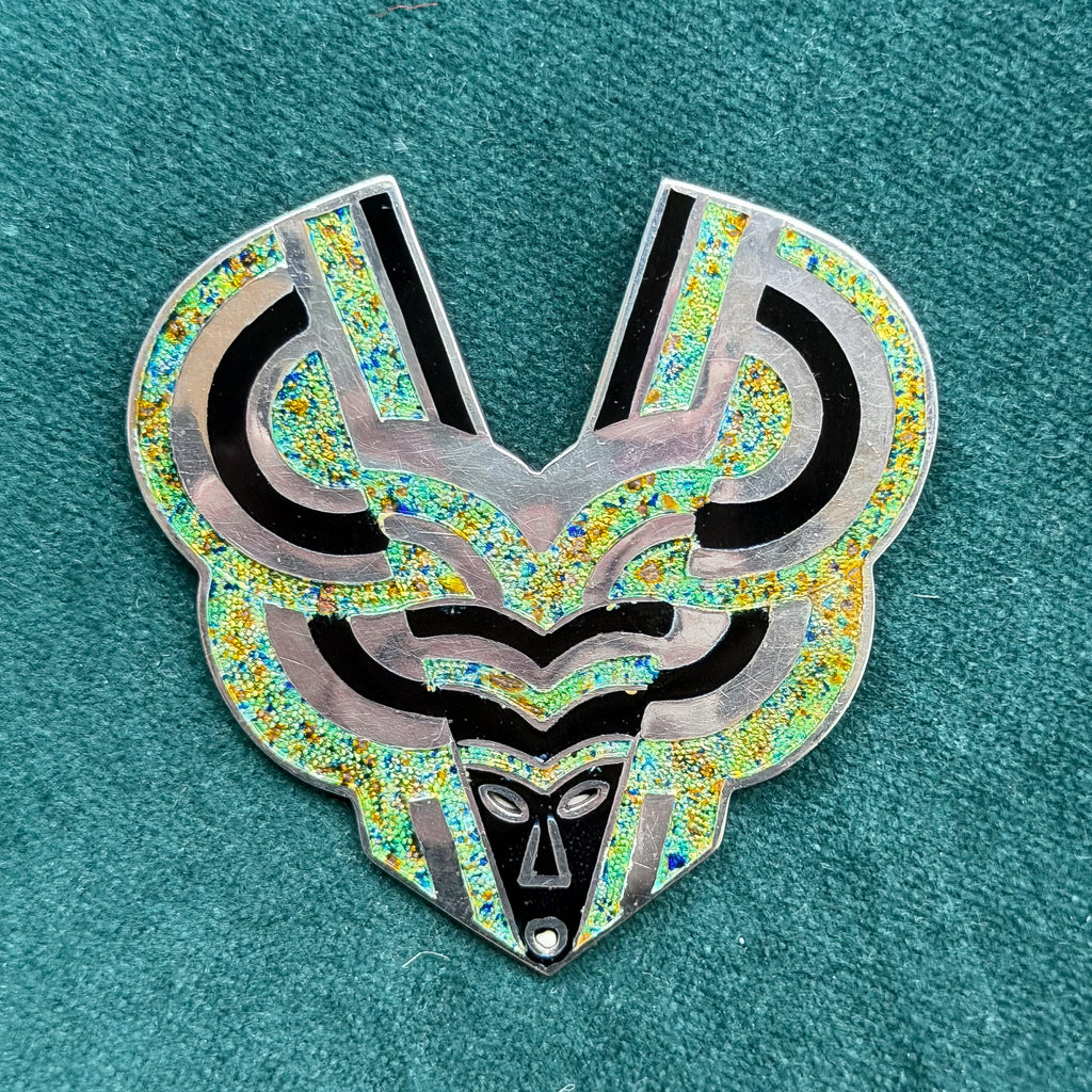 The design is champleve style enamel & sterling silver.