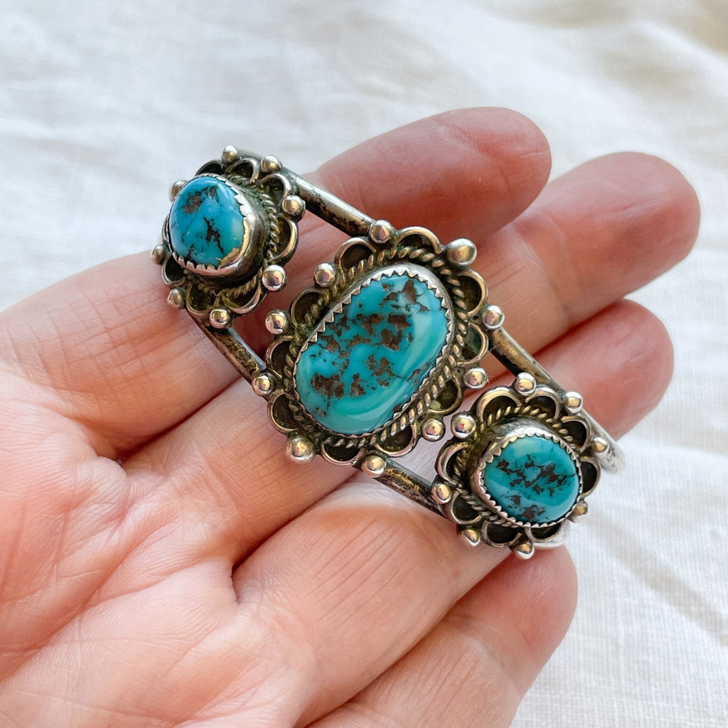 Beautiful old pawn Kingman nugget Turquoise silver bracelet.