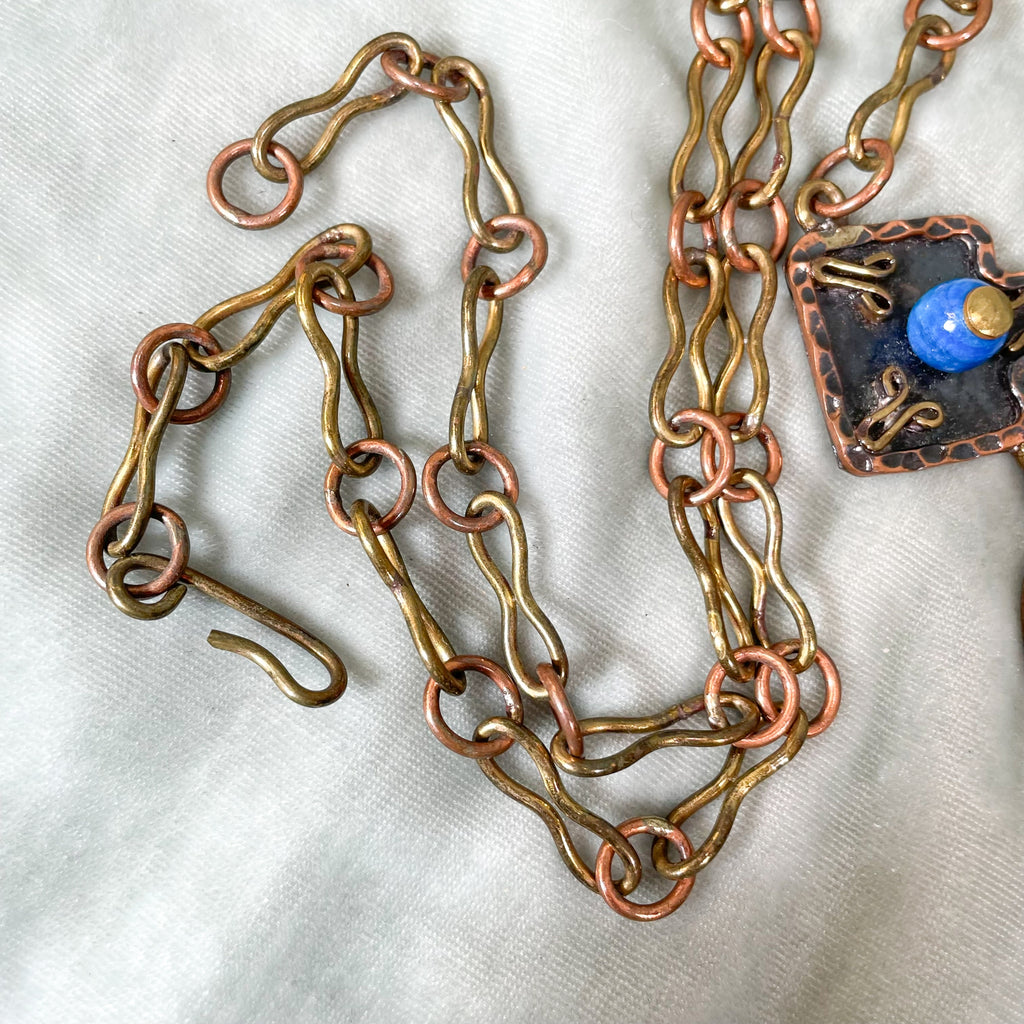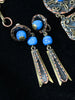 Hand crafted statement necklace with blue jadeite or lapis beads.