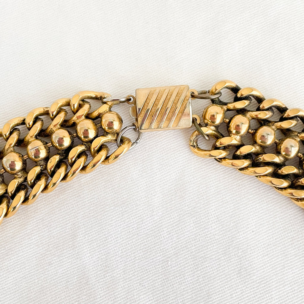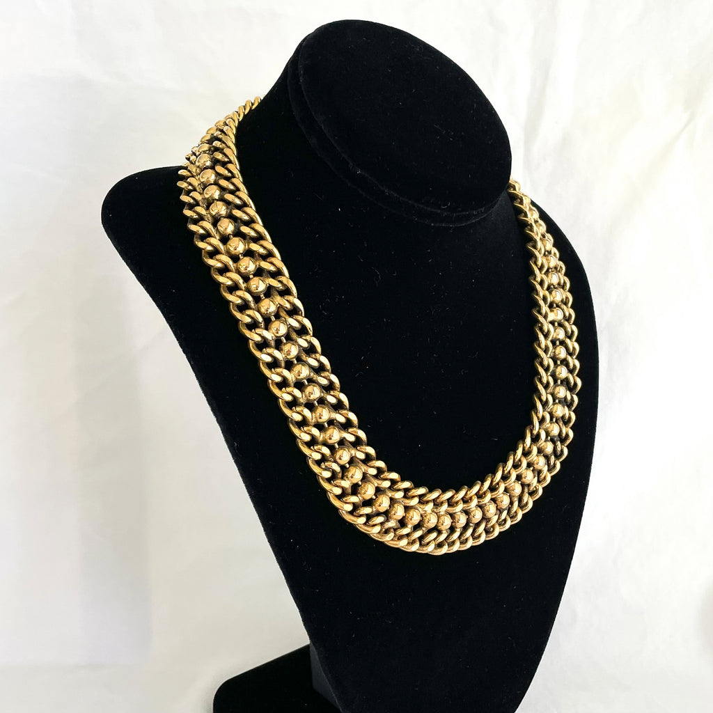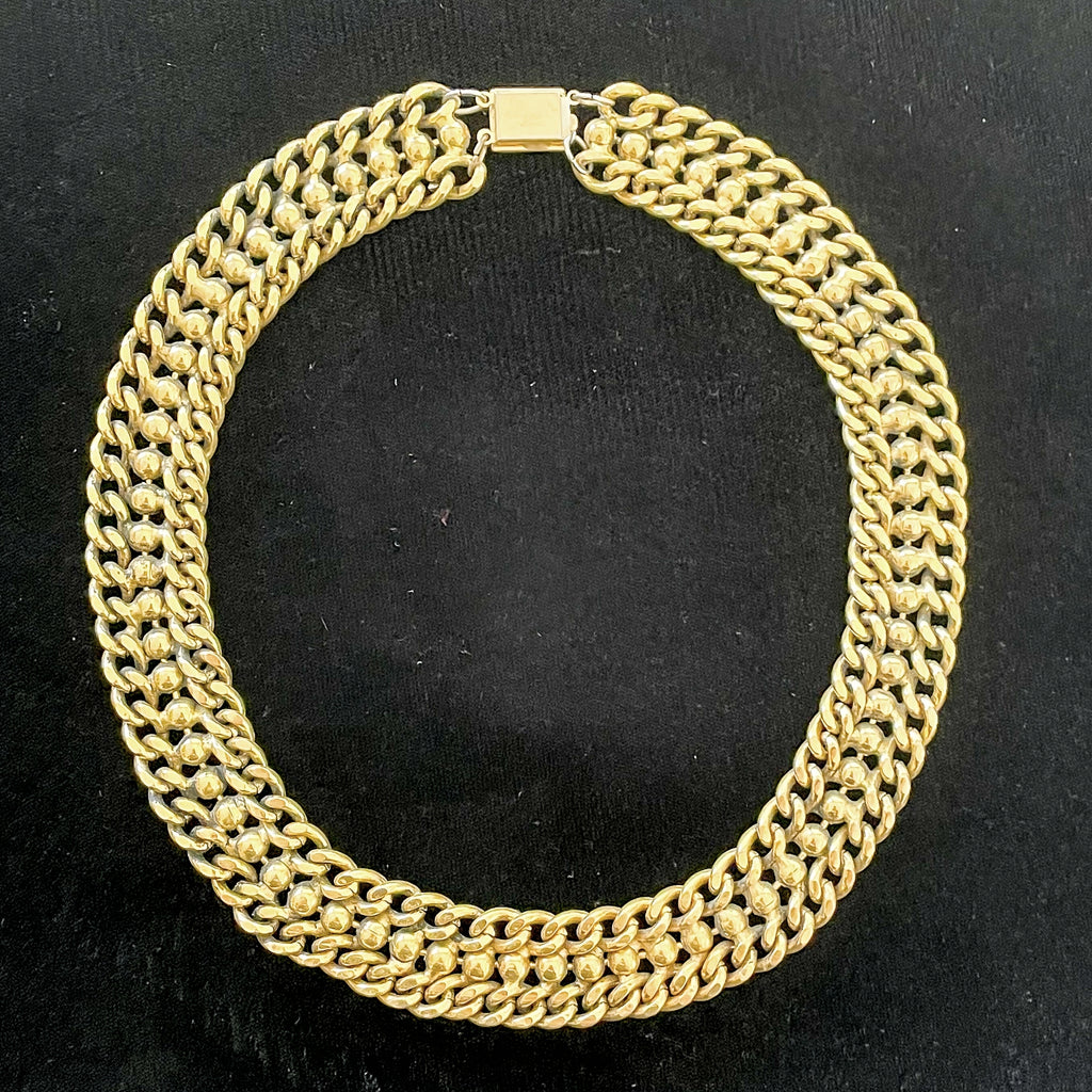 Vintage gold tone double link chain necklace with ball detail in the center.