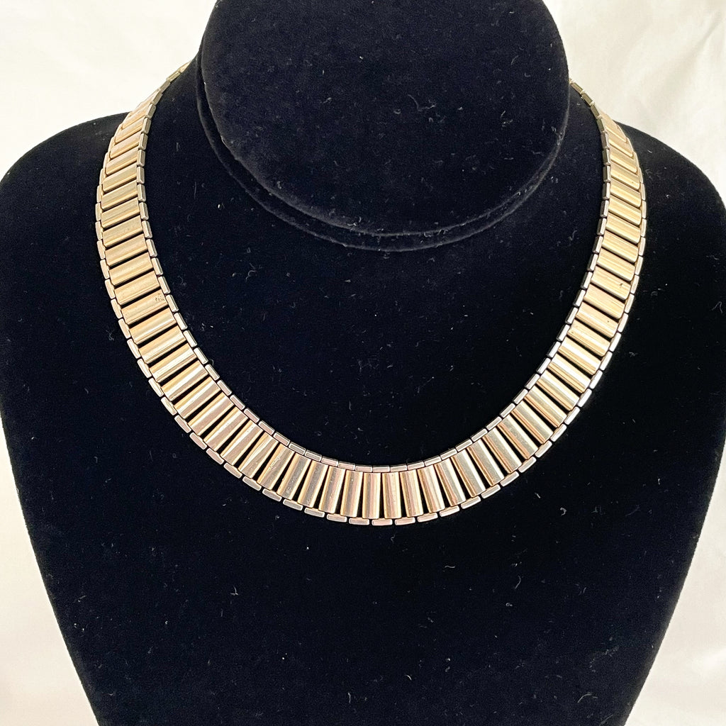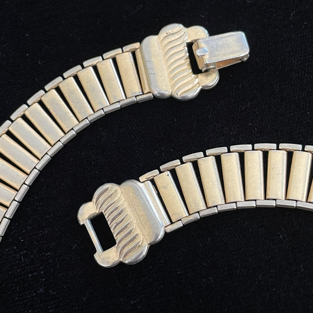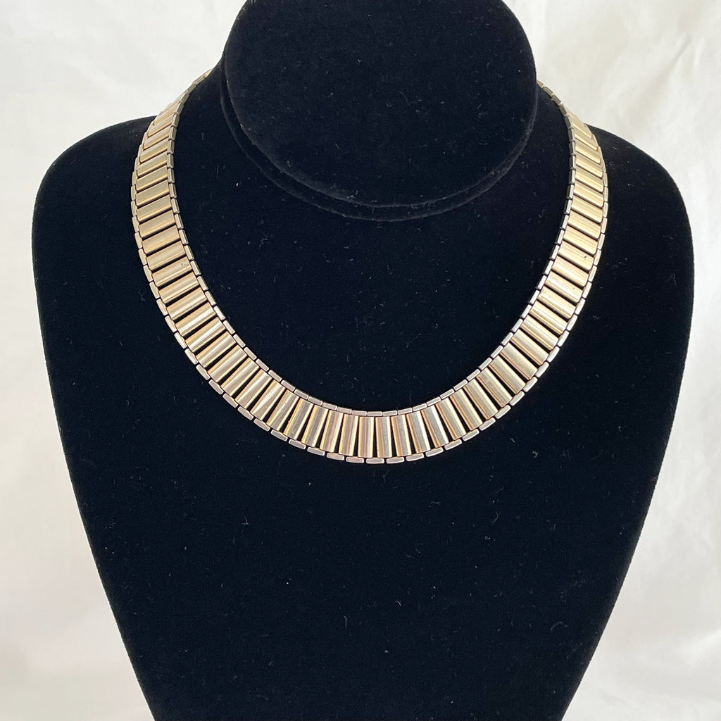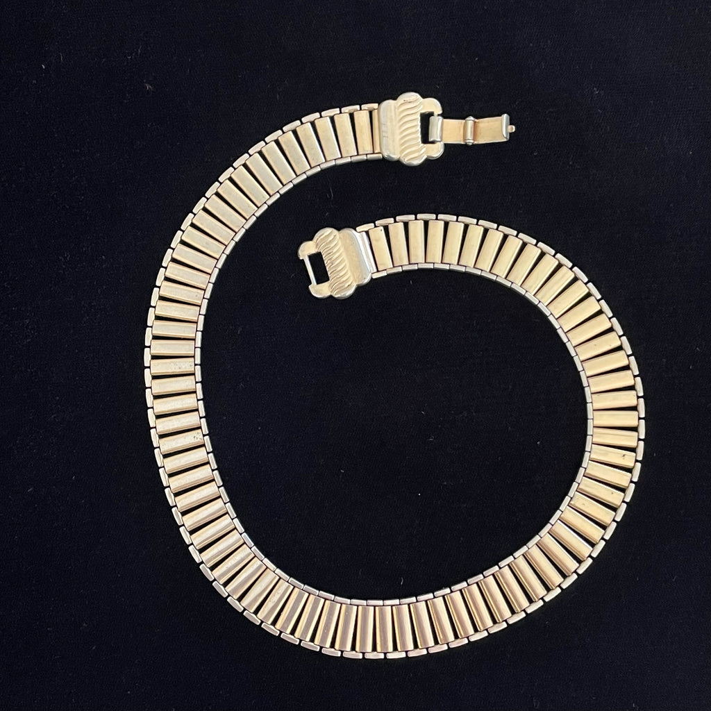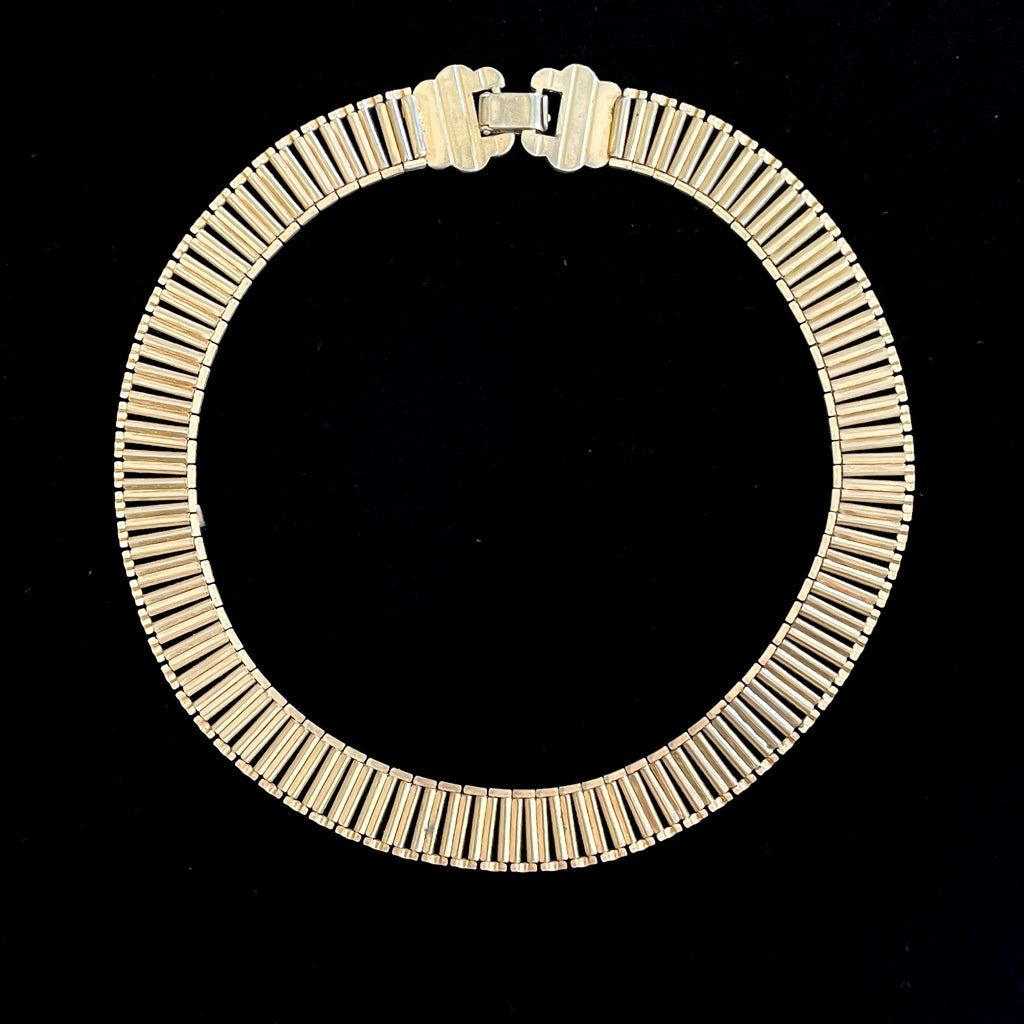 Vintage Art Deco style gold tone flat link choker/bib style necklace.