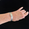 This is a slim bracelet, the gap is small, but the bracelet is slightly flexible to put on & off.