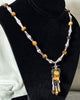 Lovely necklace with pendant featuring tassels mad form silver & beads. Box closure.