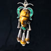 Handmade necklace, silver and tiger's eye carved face & beads, malachite inlay details.