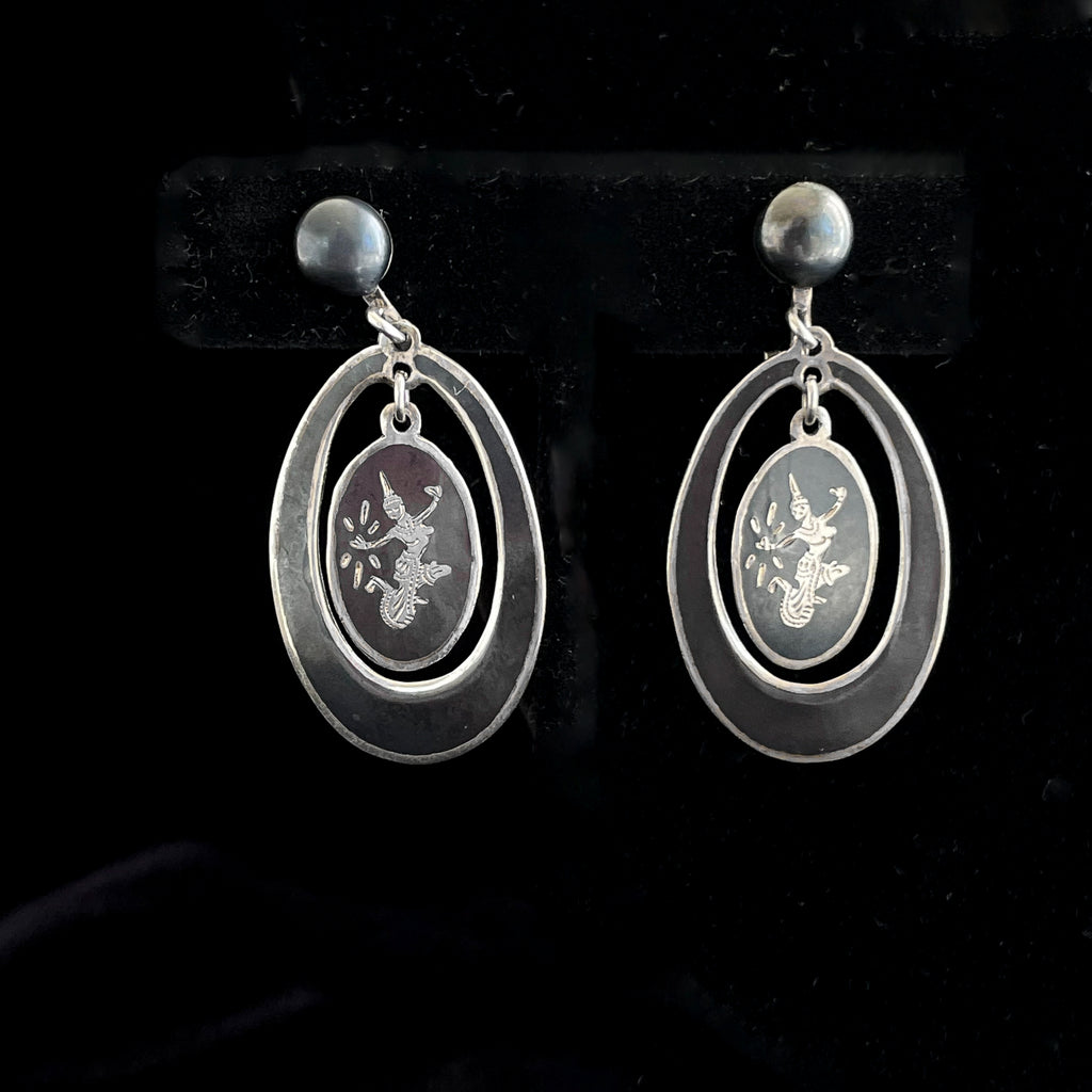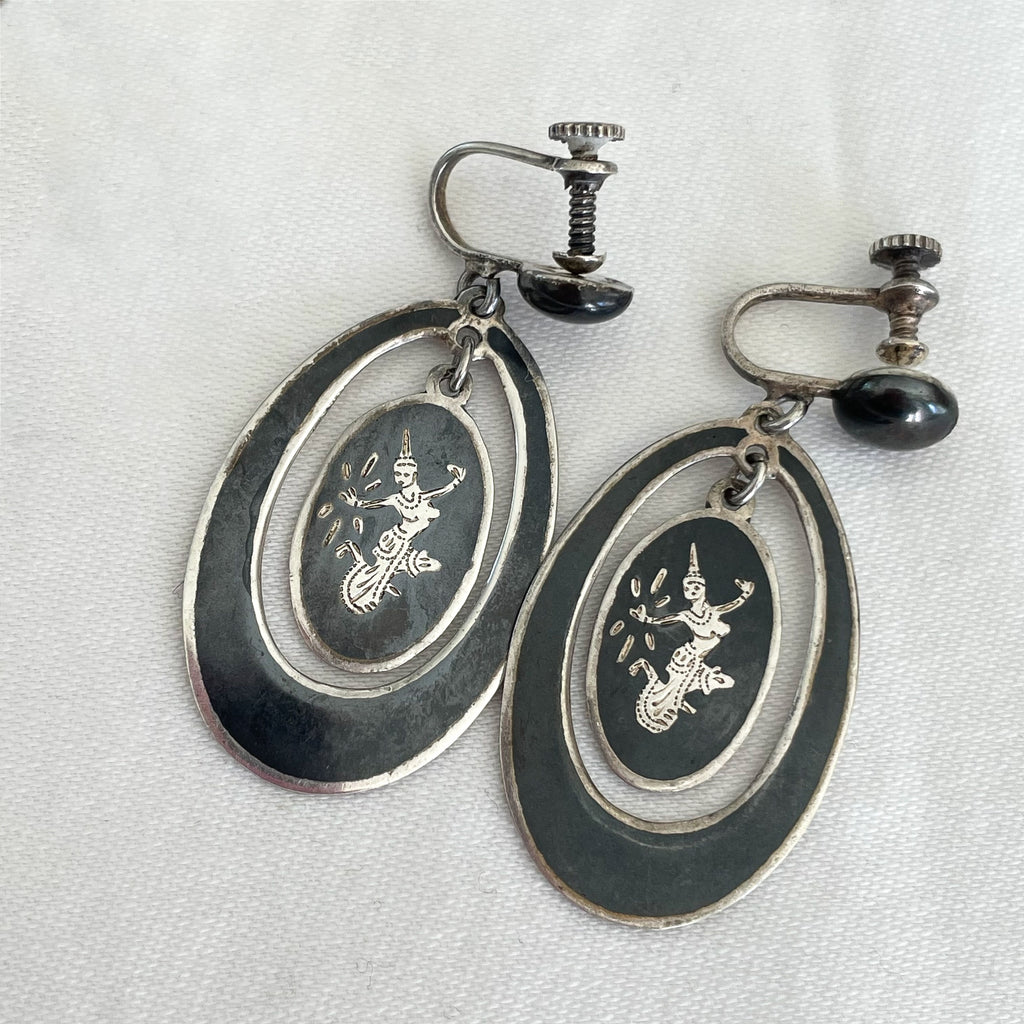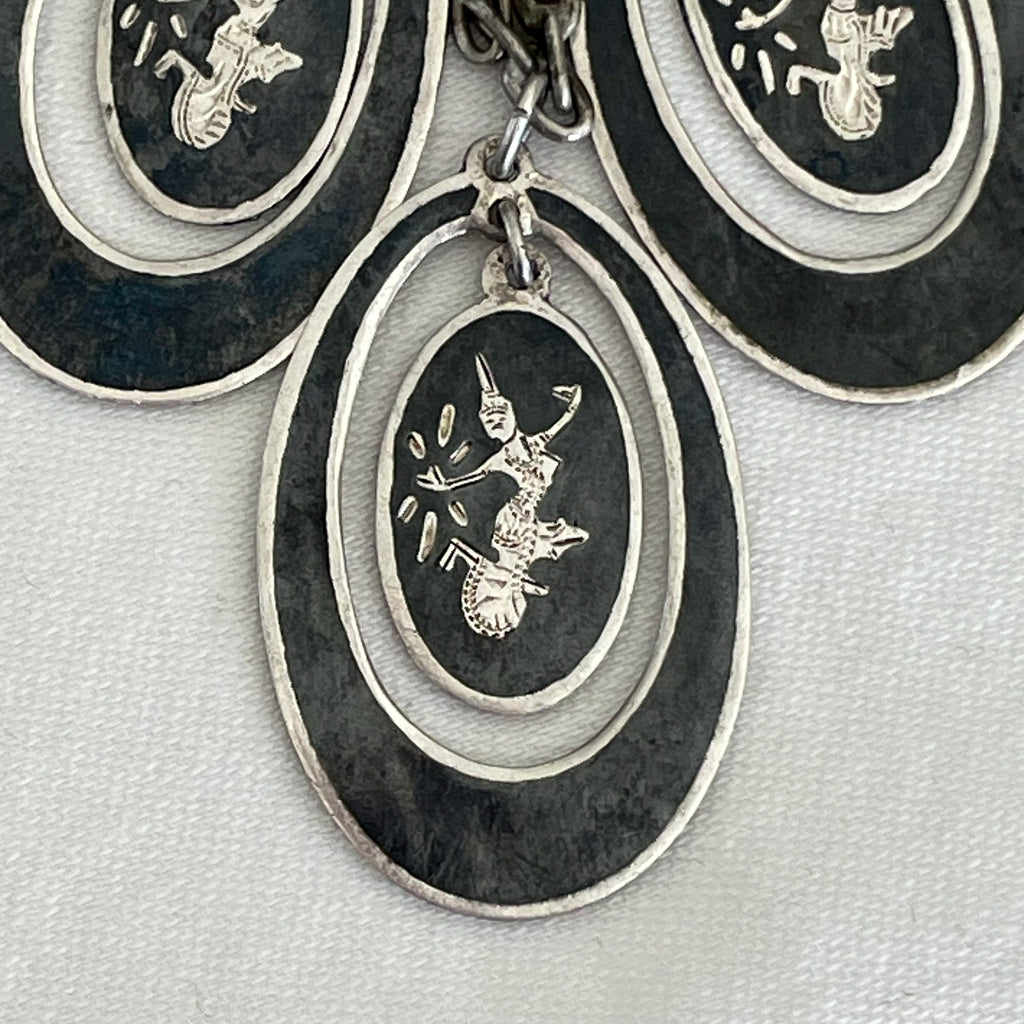 The center of the disc is etched with a Siamese dancer. The background and outer rim are black oxidized finish.