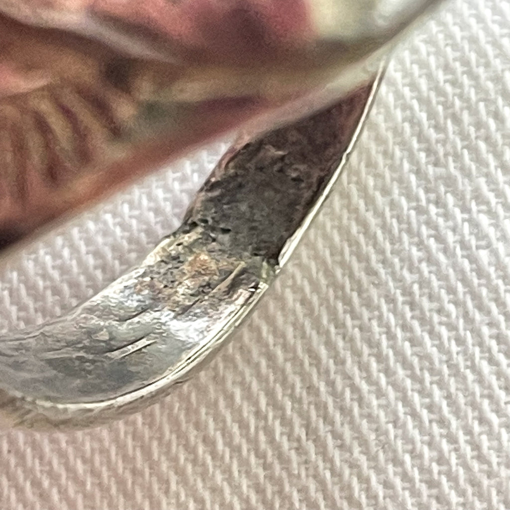 Condition: Overall, very good condition. It looks as if the ring has been sized or maybe just worn at the back on the band. Very wearable.