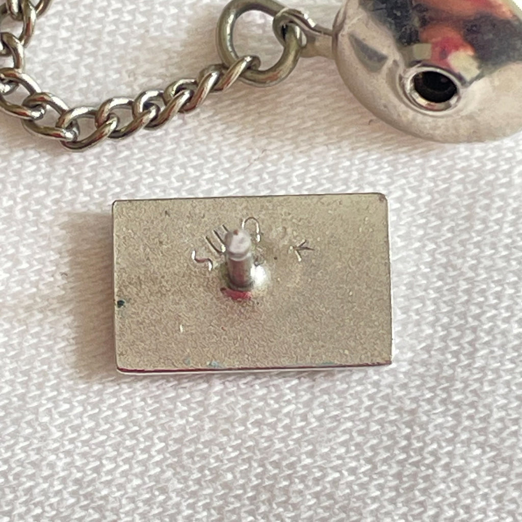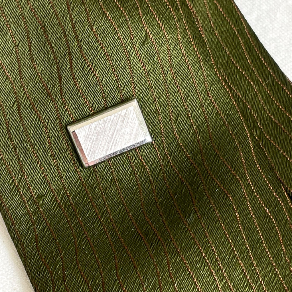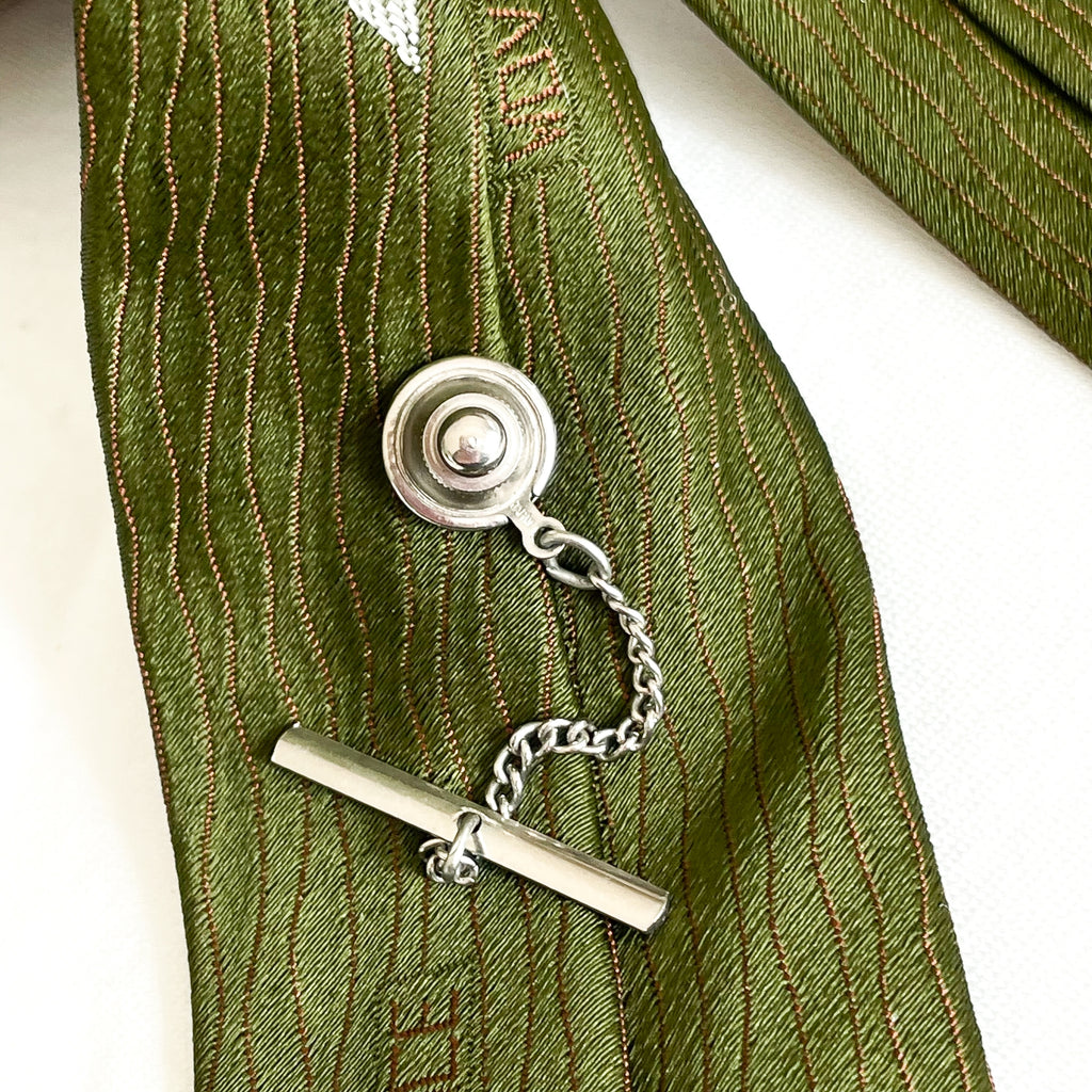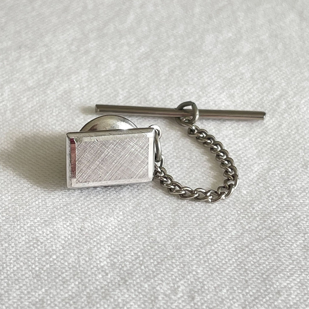 Vintage MCM silver tone tie pin. Florentine & shiny finish. Tiny pin, chain with removable back.