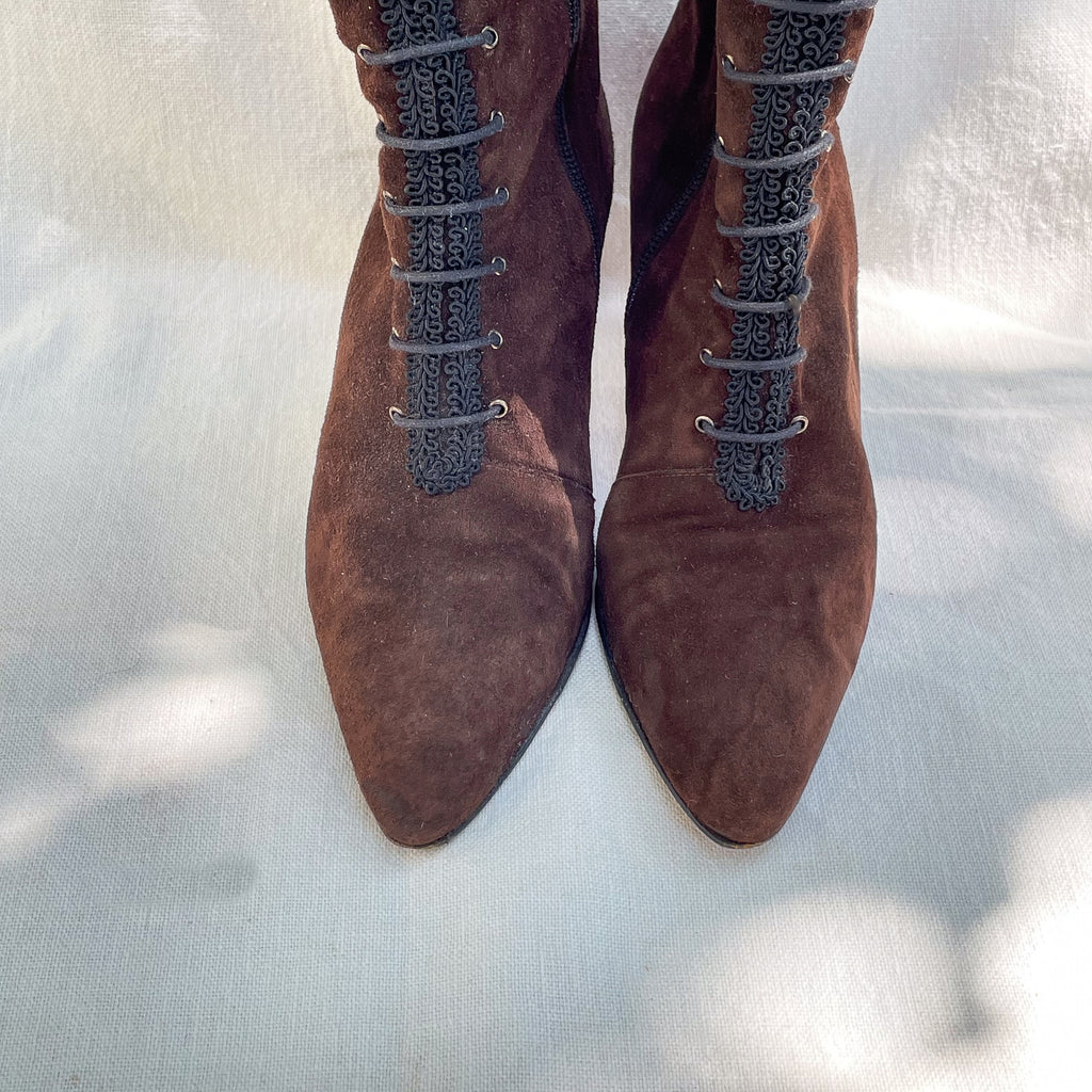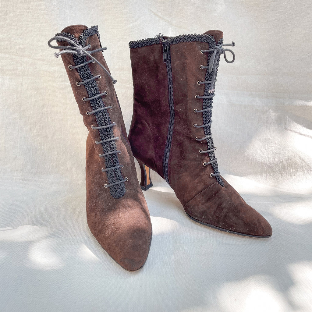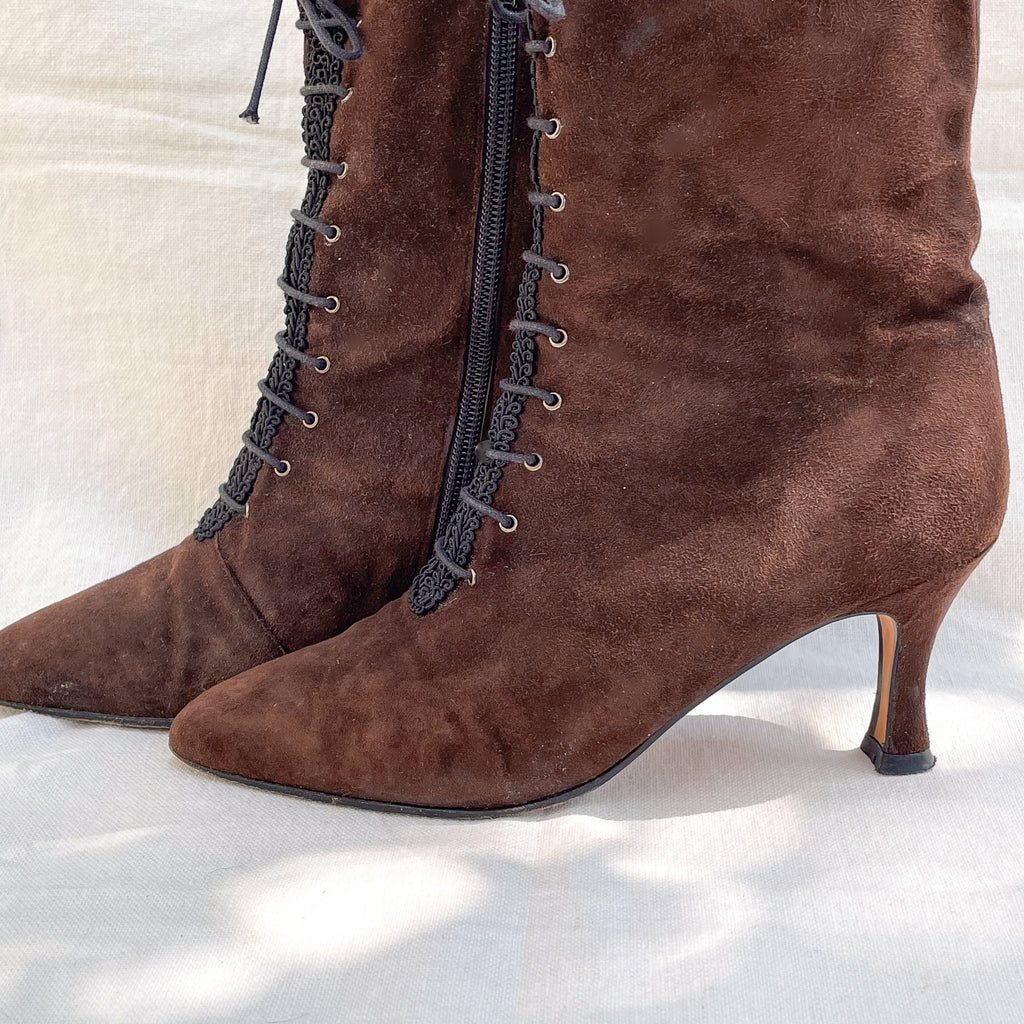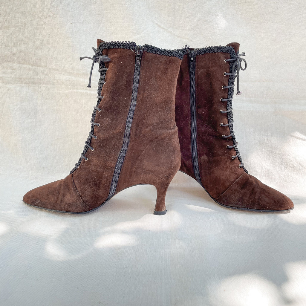 Vintage Brown Suede Granny Ankle Boots, Lace Up Grunge Victorian Style Boots 6.5